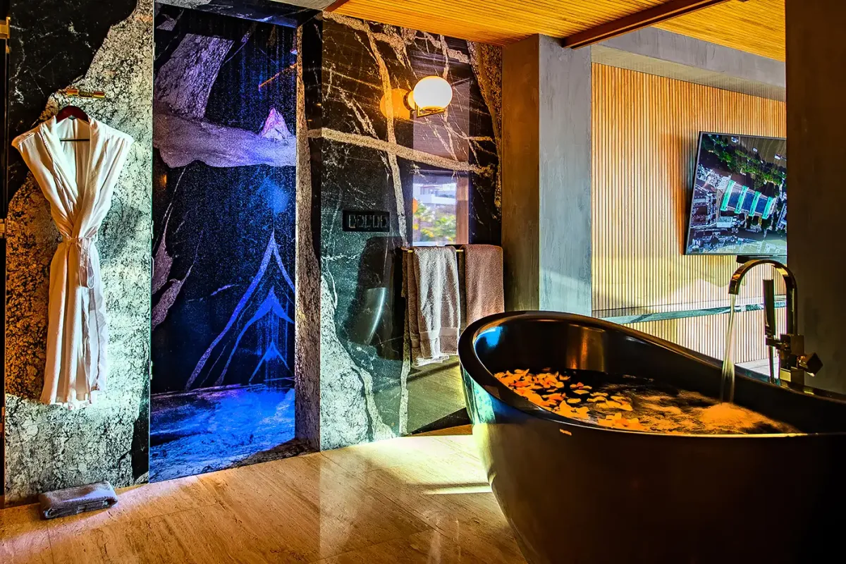 ocean view, terrace/balcony, walk-in closet, private bath with 20’ rainfall double shower & Jacuzzi tub
