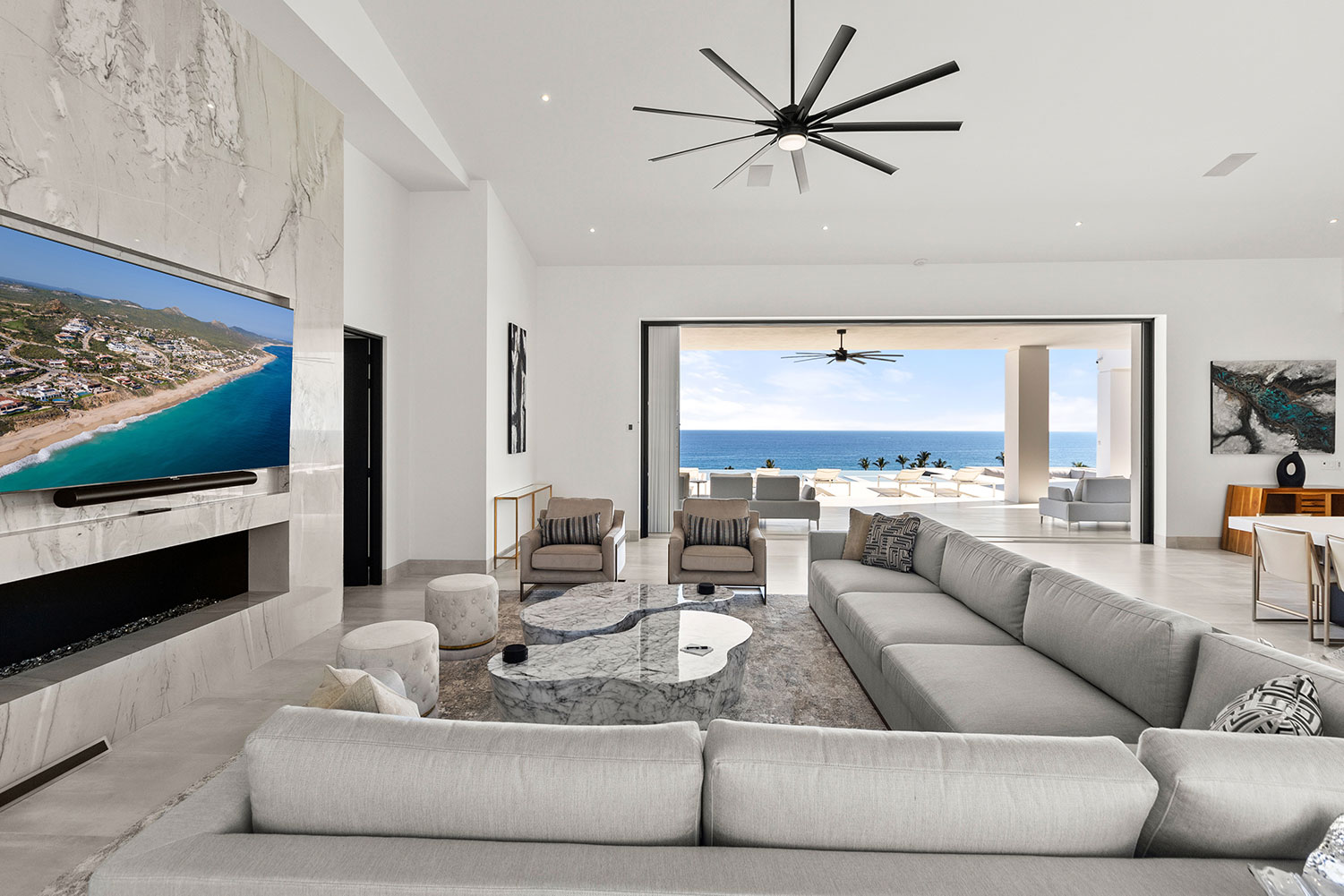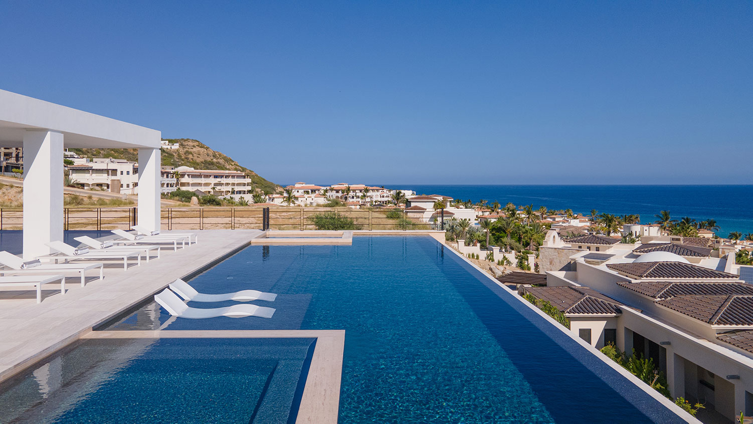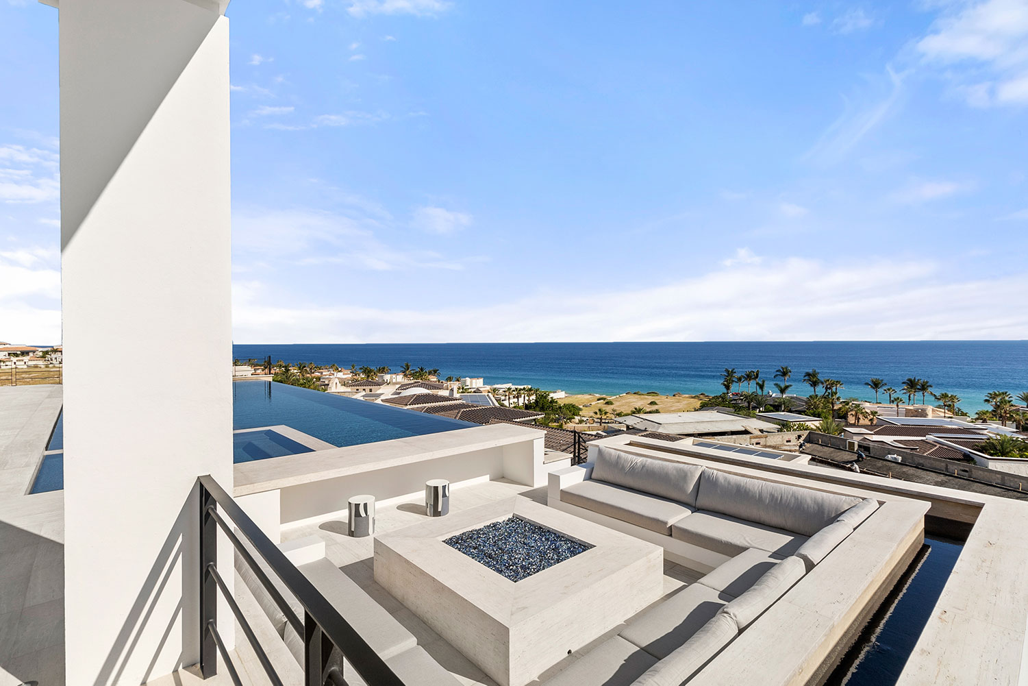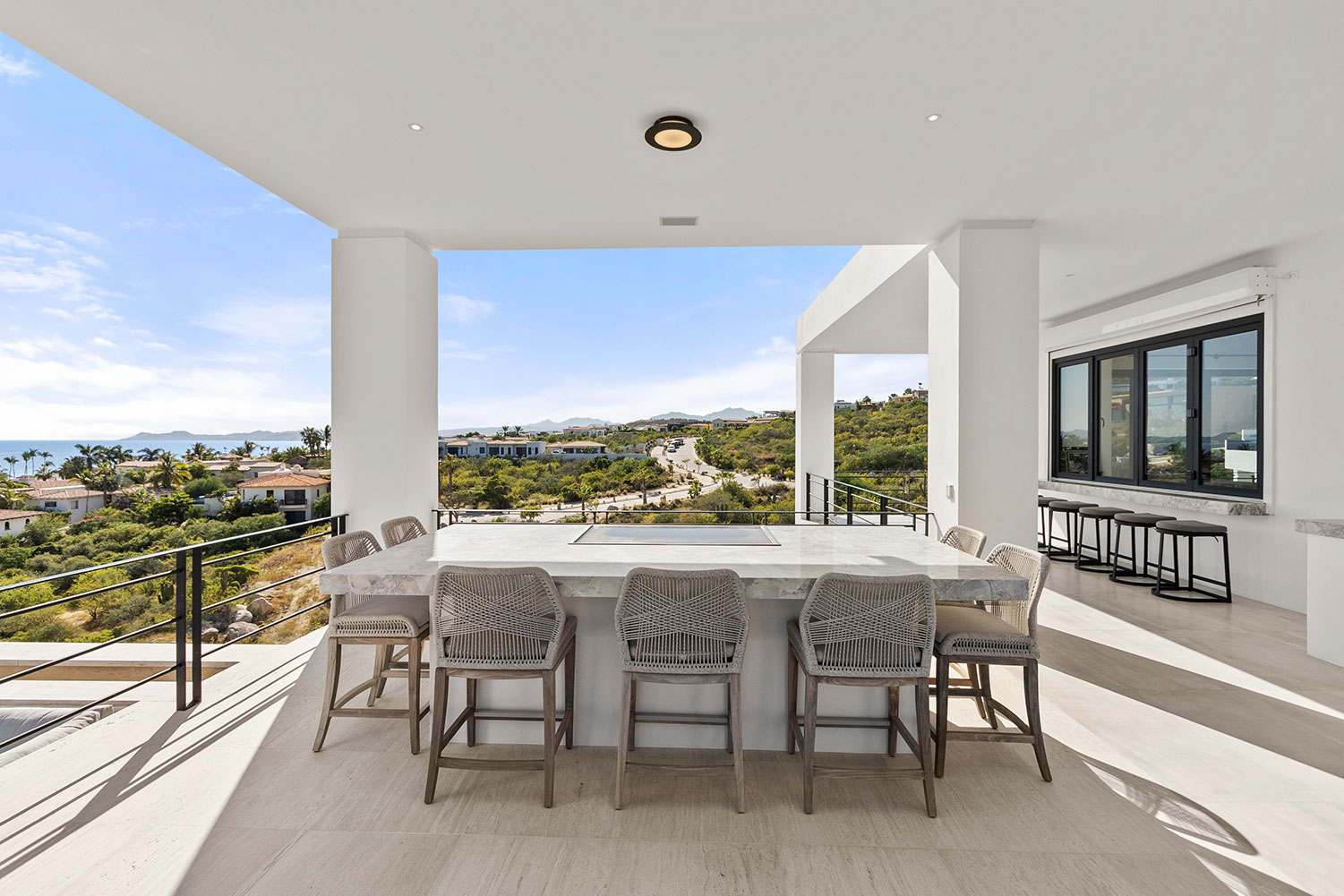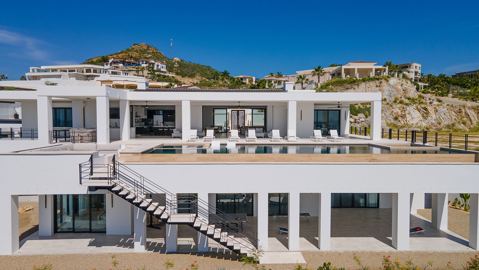 Poco Paraiso is a two-level villa in Puerto Los Cabos where glass, scale and indoor-outdoor living frame the Sea of Cortez at every turn. The main level opens into a chef-driven kitchen, bar lounge, theater room and game areas, while a gym with sauna and a cold plunge set the tone for guests who travel with wellness in mind. Pocket doors disappear to connect everything to the terrace: an infinity pool, jacuzzi, cold tub, tepanyaki station and fire pit lounge designed for long Baja evenings. Daily housekeeping and a personal concierge orchestrate the stay, with Puerto Los Cabos Beach an easy three-minute walk away.