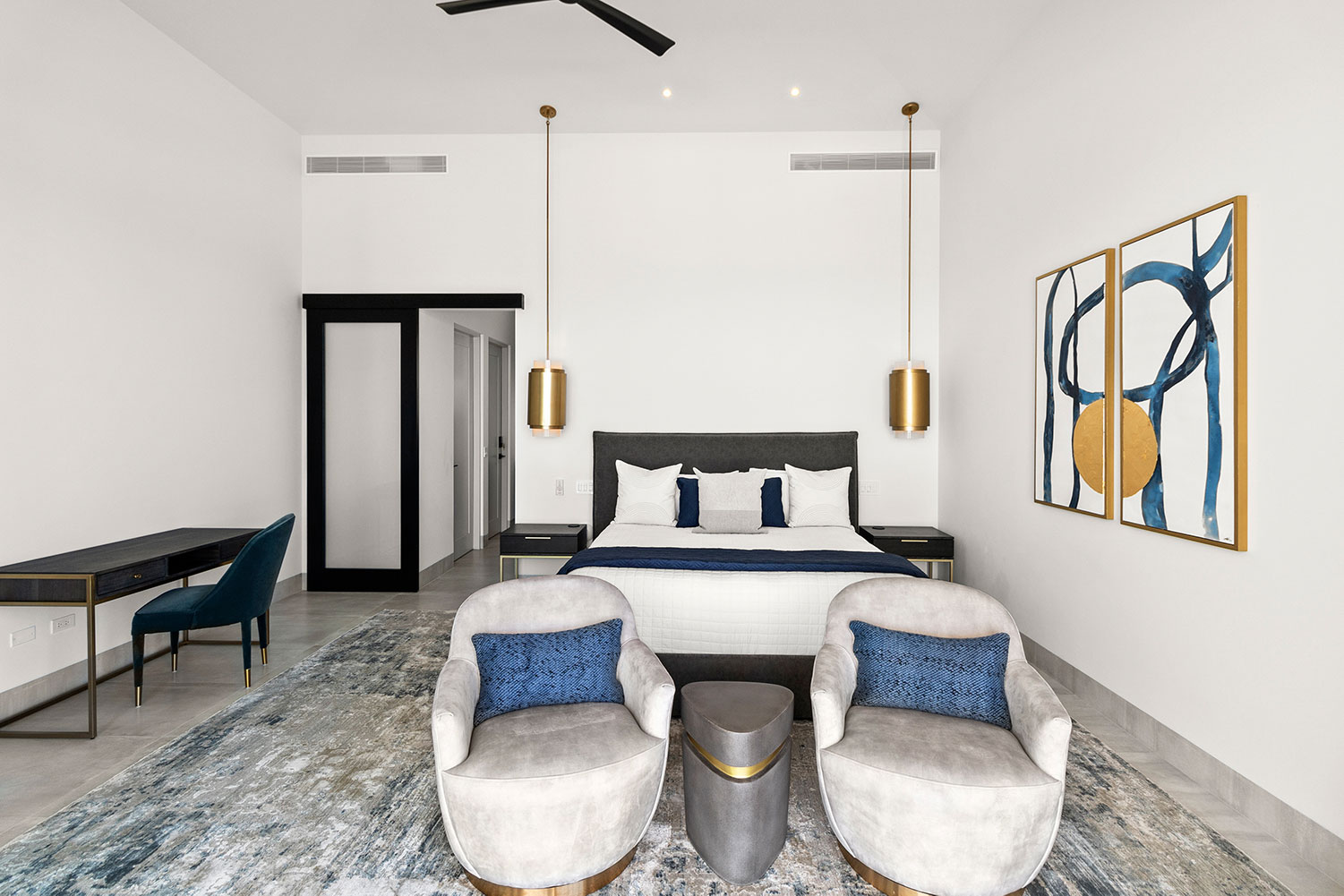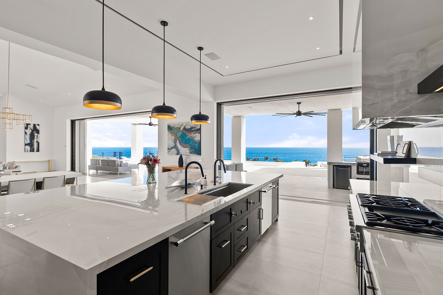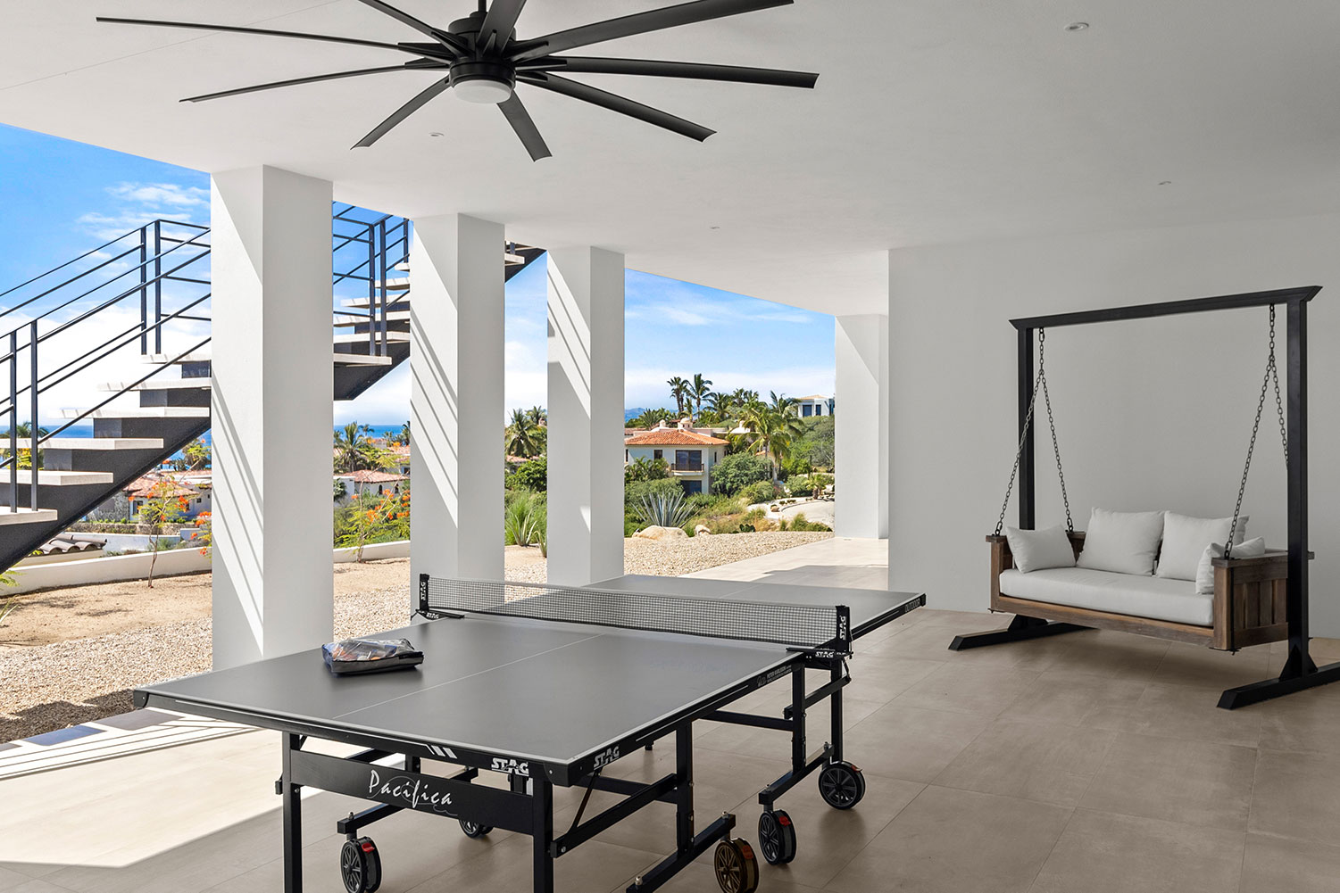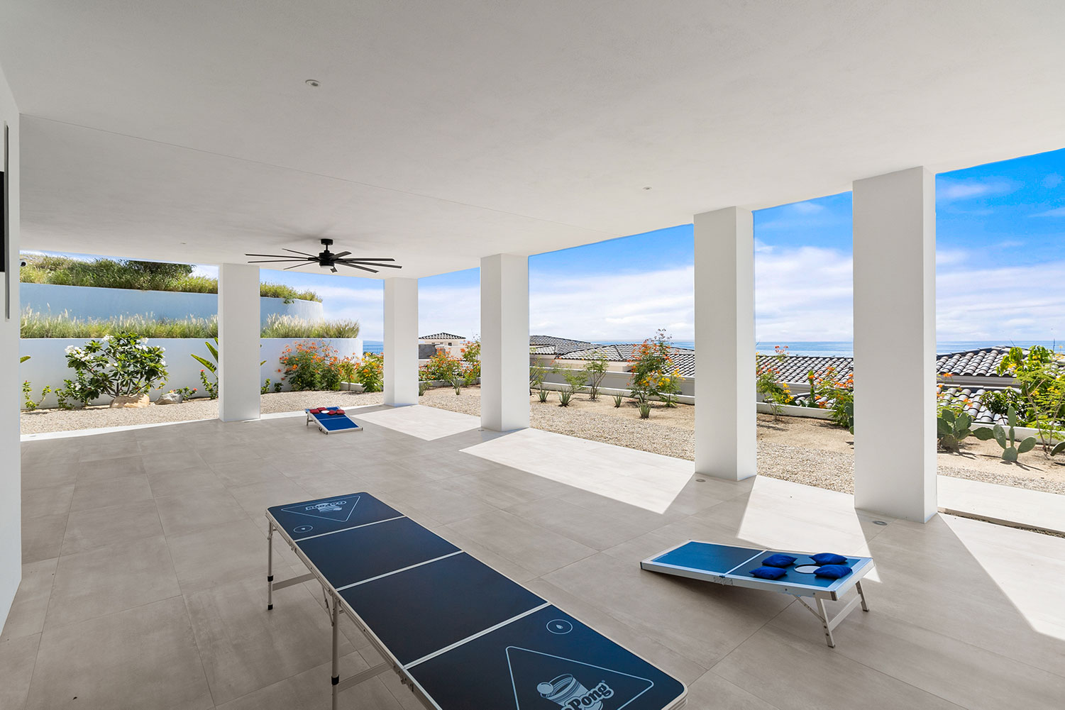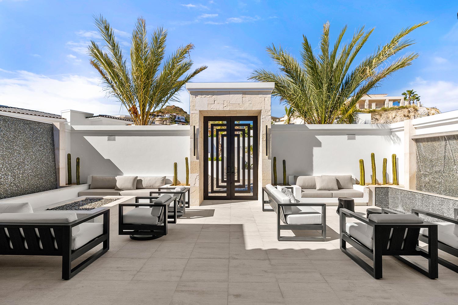 Poco Paraiso is a two-level villa in Puerto Los Cabos where glass, scale and indoor-outdoor living frame the Sea of Cortez at every turn. The main level opens into a chef-driven kitchen, bar lounge, theater room and game areas, while a gym with sauna and a cold plunge set the tone for guests who travel with wellness in mind. Pocket doors disappear to connect everything to the terrace: an infinity pool, jacuzzi, cold tub, tepanyaki station and fire pit lounge designed for long Baja evenings. Daily housekeeping and a personal concierge orchestrate the stay, with Puerto Los Cabos Beach an easy three-minute walk away.
