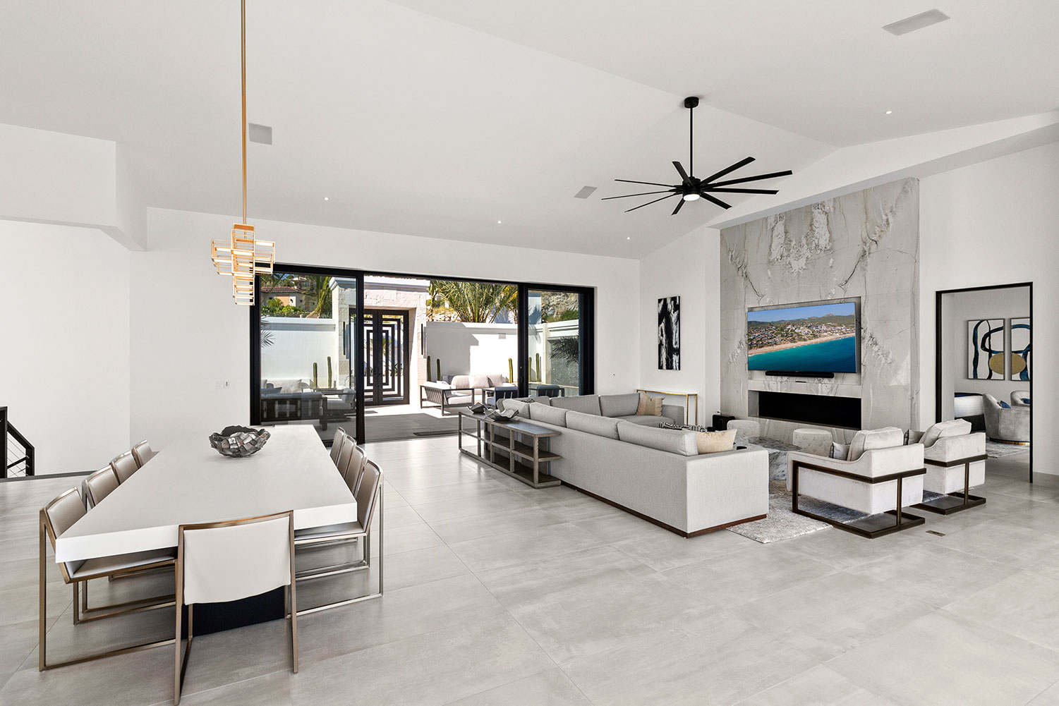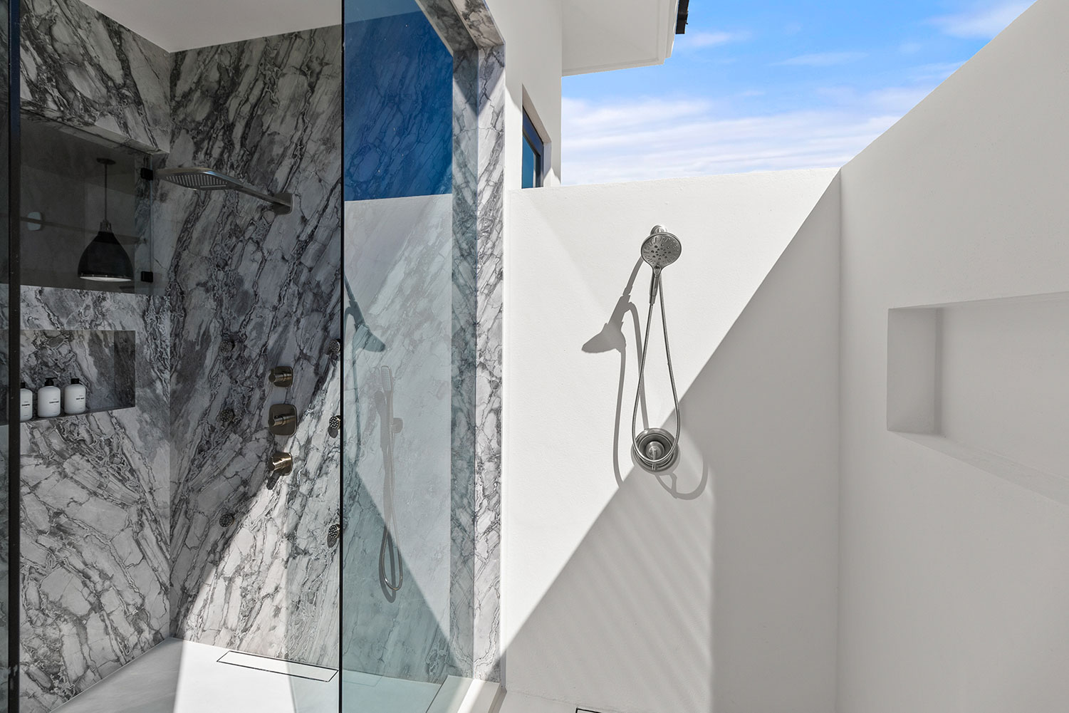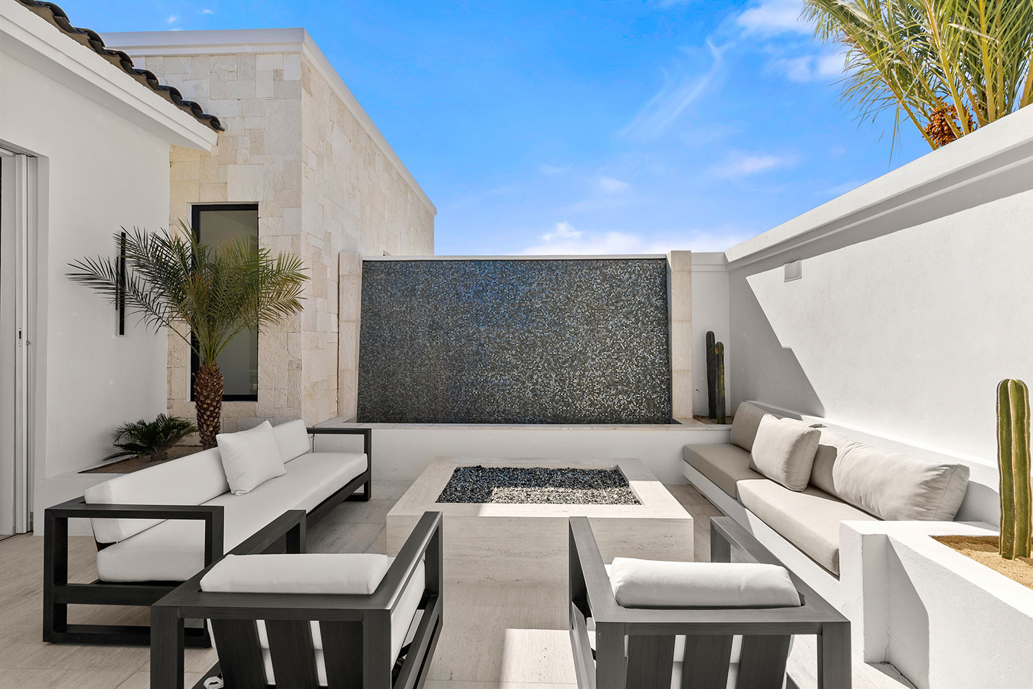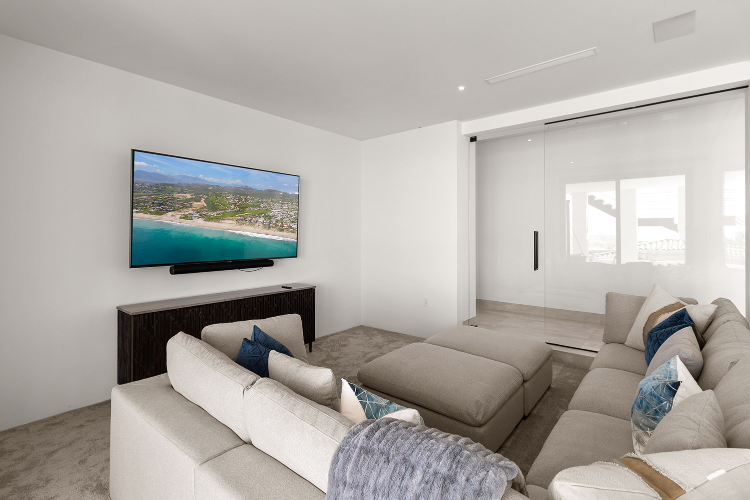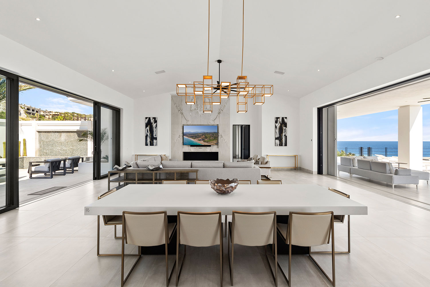 Poco Paraiso is a two-level villa in Puerto Los Cabos where glass, scale and indoor-outdoor living frame the Sea of Cortez at every turn. The main level opens into a chef-driven kitchen, bar lounge, theater room and game areas, while a gym with sauna and a cold plunge set the tone for guests who travel with wellness in mind. Pocket doors disappear to connect everything to the terrace: an infinity pool, jacuzzi, cold tub, tepanyaki station and fire pit lounge designed for long Baja evenings. Daily housekeeping and a personal concierge orchestrate the stay, with Puerto Los Cabos Beach an easy three-minute walk away.