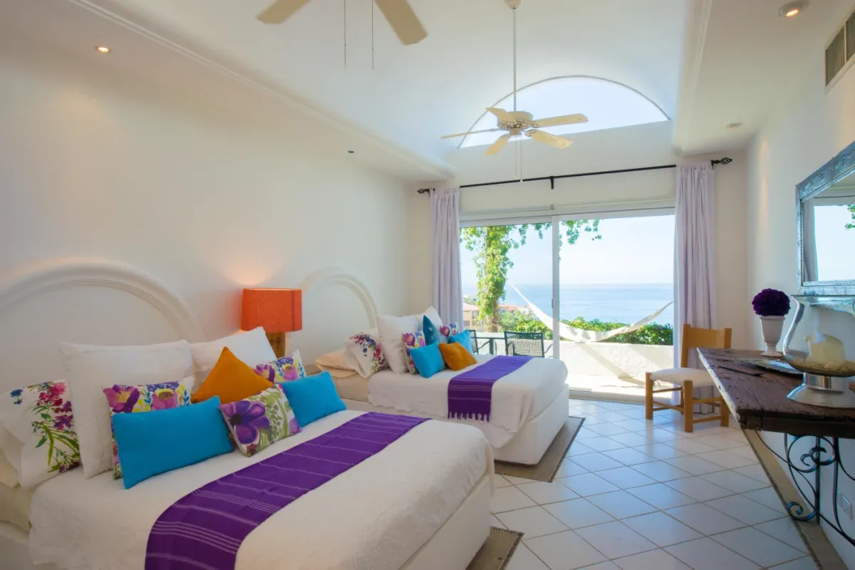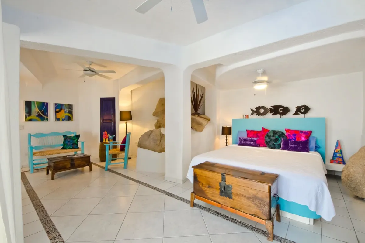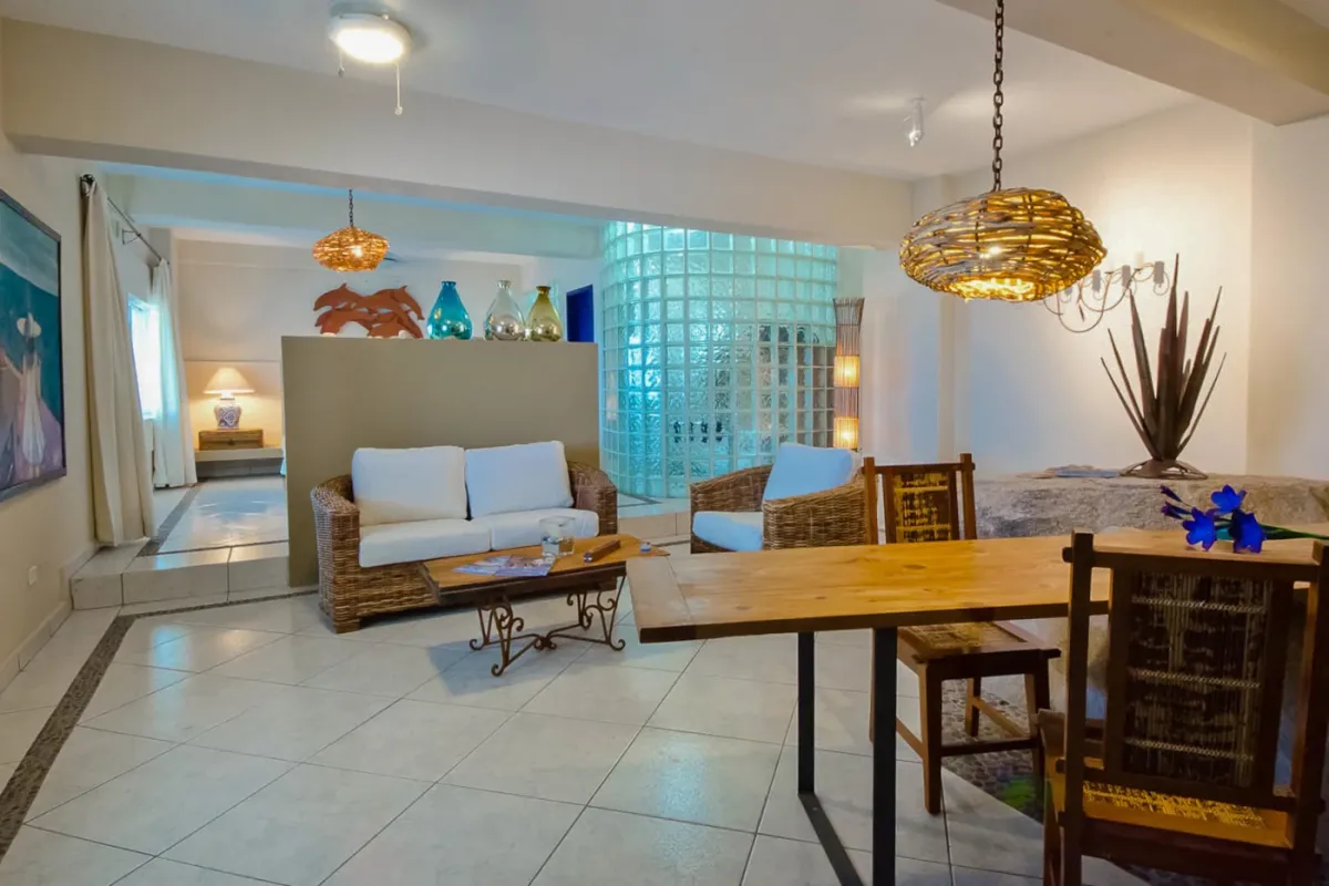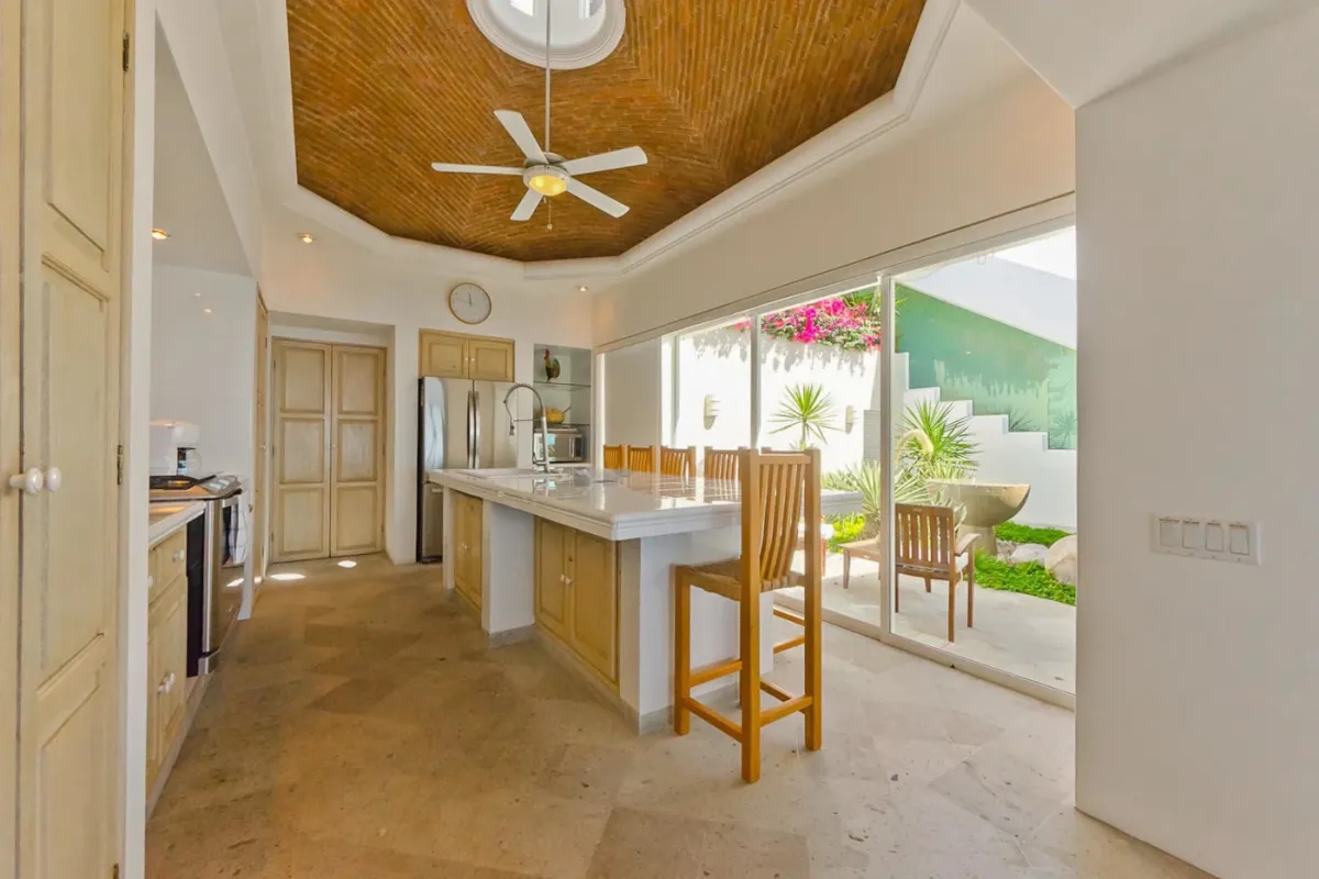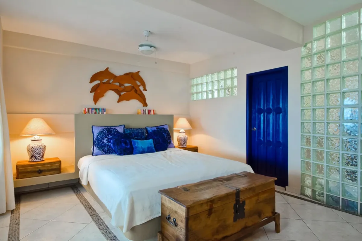 Cerca del Cielo (“Close to Heaven”) is a striking 6-bedroom, 6.5-bathroom villa defined by bold architecture and contemporary design. From Cantera tile floors and granite finishes to artistic details like glass brick walls, sculptural stone elements, and curated garden art, every space feels intentional and unique.