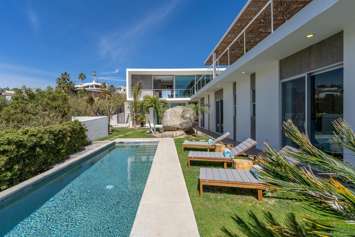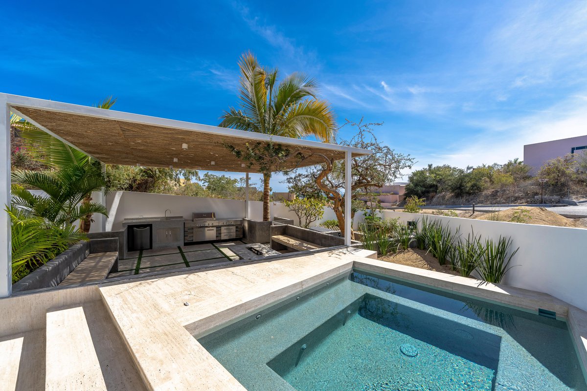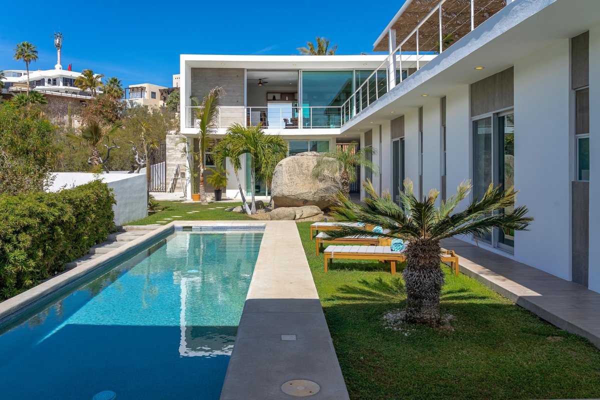 Tucked inside the exclusive gated community of Cabo Bello, Casa Blanca is your dream villa come to life. Think: long pool for lounging, oversized jacuzzi for soaking, and outdoor everything—3 different dining areas, 2 grills, cozy fire pit, sun-soaked loungers, and even a full-on exterior bar to keep the drinks flowing.