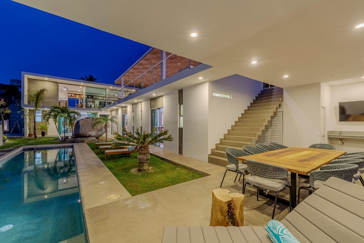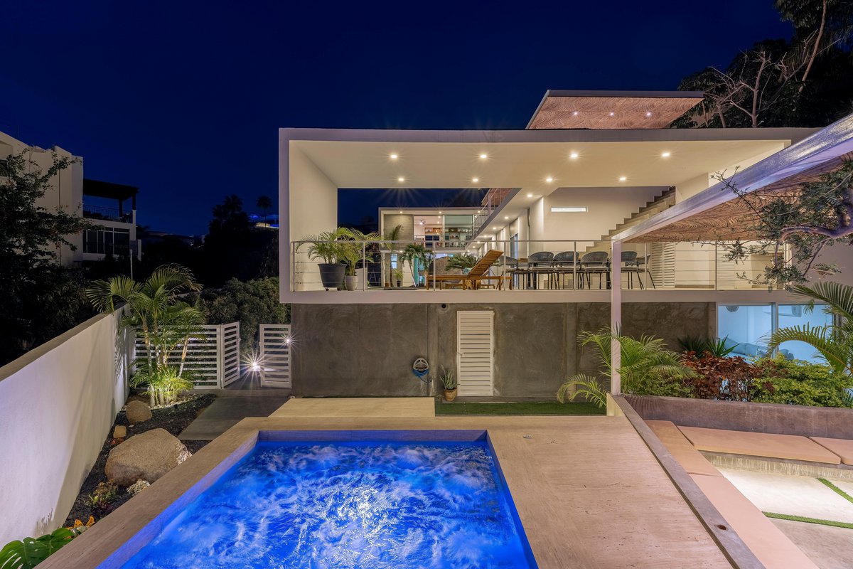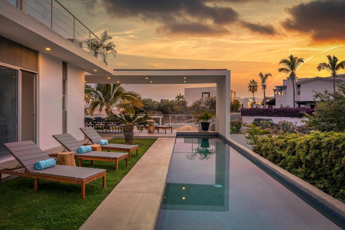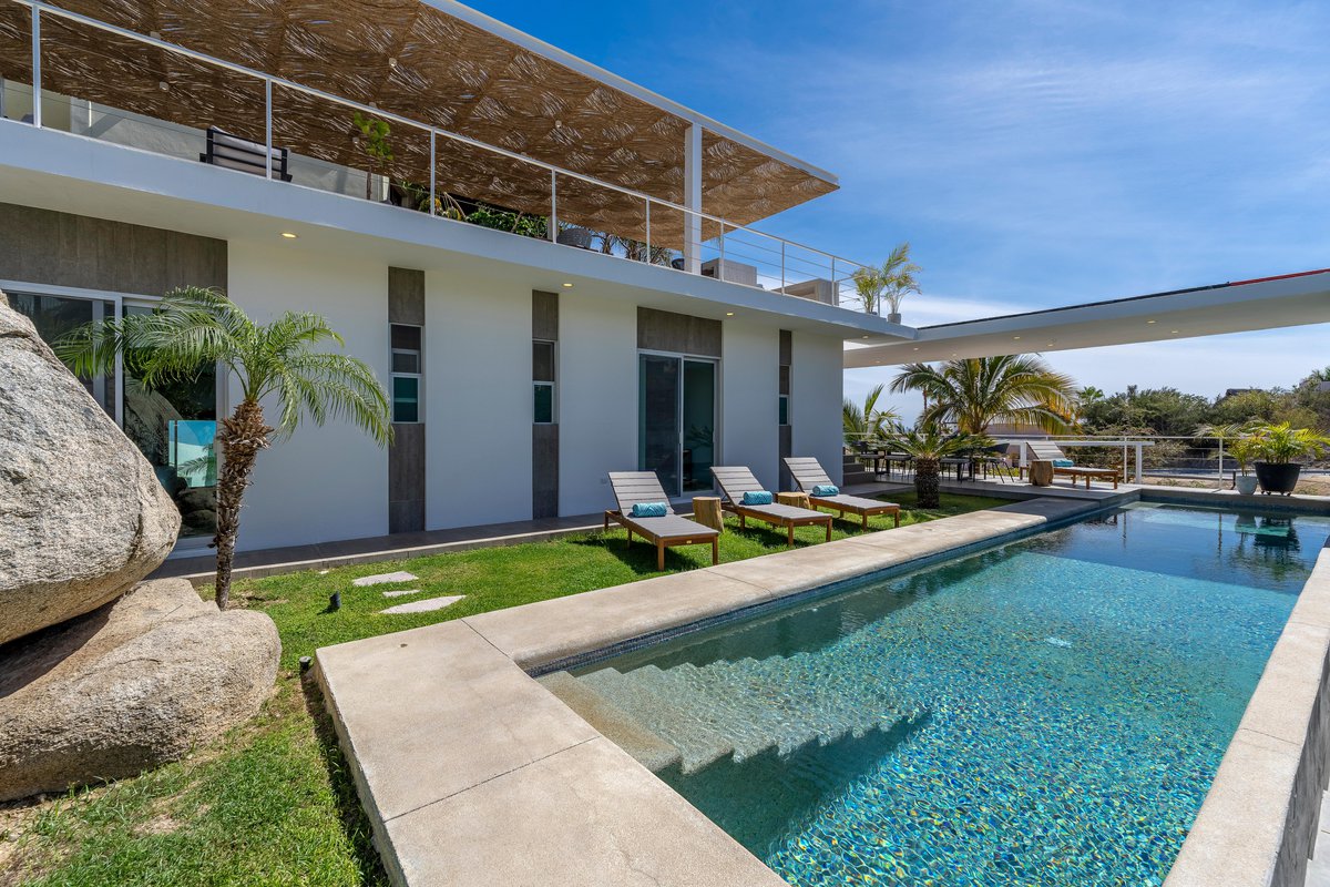 Tucked inside the exclusive gated community of Cabo Bello, Casa Blanca is your dream villa come to life. Think: long pool for lounging, oversized jacuzzi for soaking, and outdoor everything—3 different dining areas, 2 grills, cozy fire pit, sun-soaked loungers, and even a full-on exterior bar to keep the drinks flowing.