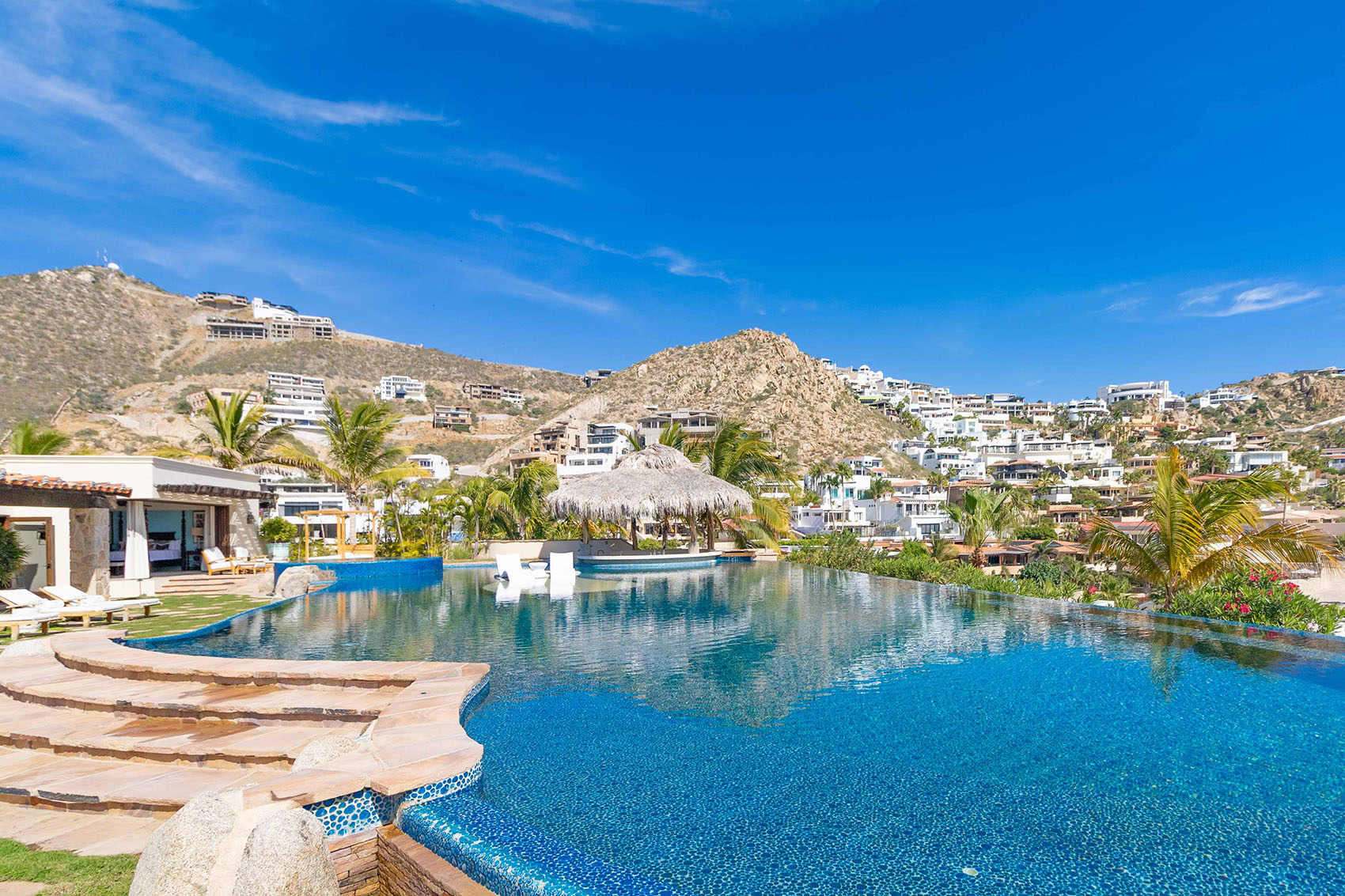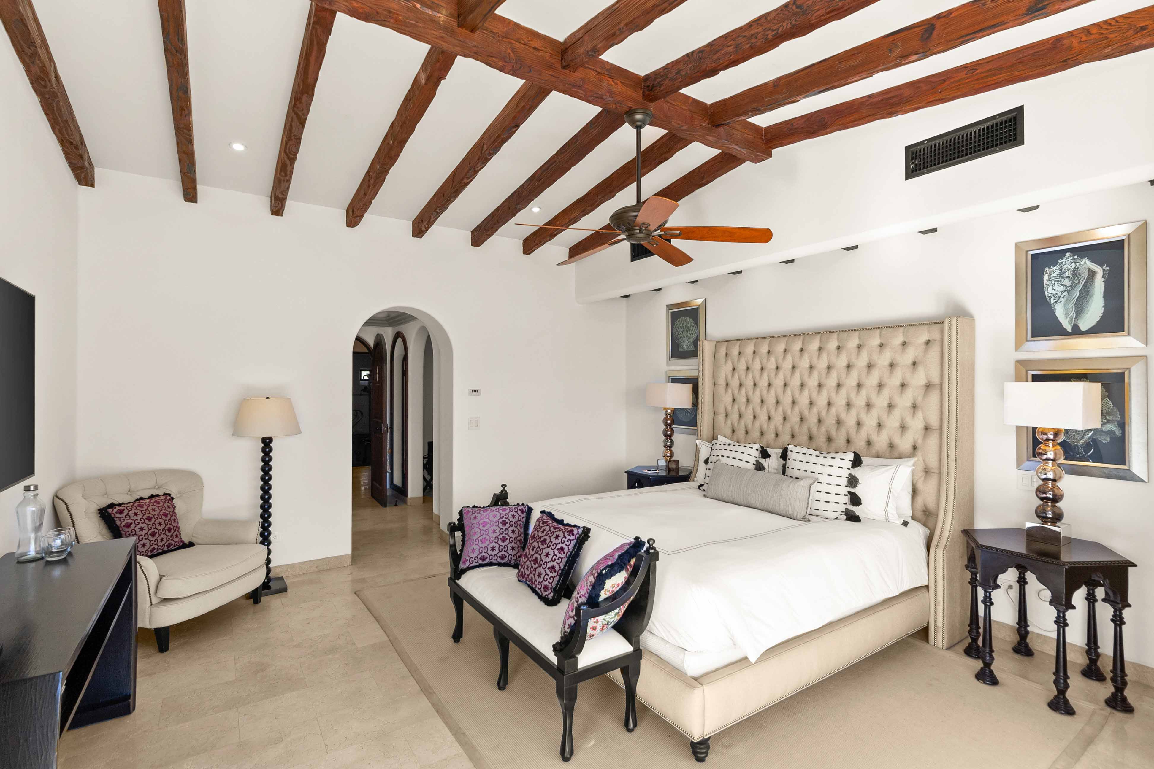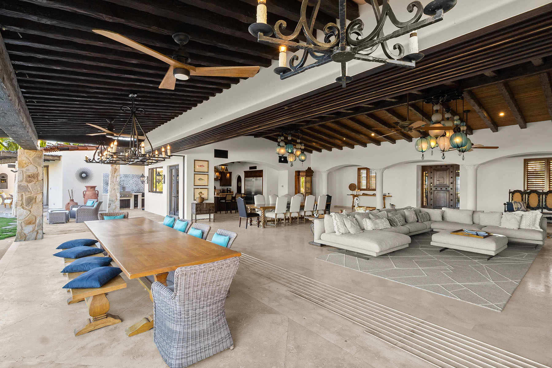 Set across four hillside lots inside a prestigious, elevated community in Cabo San Lucas known as “The Beverly Hills of Cabo,” Casa de Karma commands cinematic Pacific views with the quiet of Pedregal’s cobblestone streets and old-world charm — yet sits just minutes from downtown. Contemporary Mediterranean design brings vaulted ceilings, stone textures, and warm neutrals together in a single-level layout that opens wide to the ocean air. A chef-inspired kitchen anchors the interior, supported by a butler kitchen and full staff for those who prefer not to lift a finger while in Cabo. Outside, a custom infinity pool with swim-up bar, covered terraces, bocce, and dual ocean-view fire pits turn the terrace into the home’s social stage. Daily service by a private culinary team, butlers, housekeeping, and a dedicated concierge frames the entire experience.