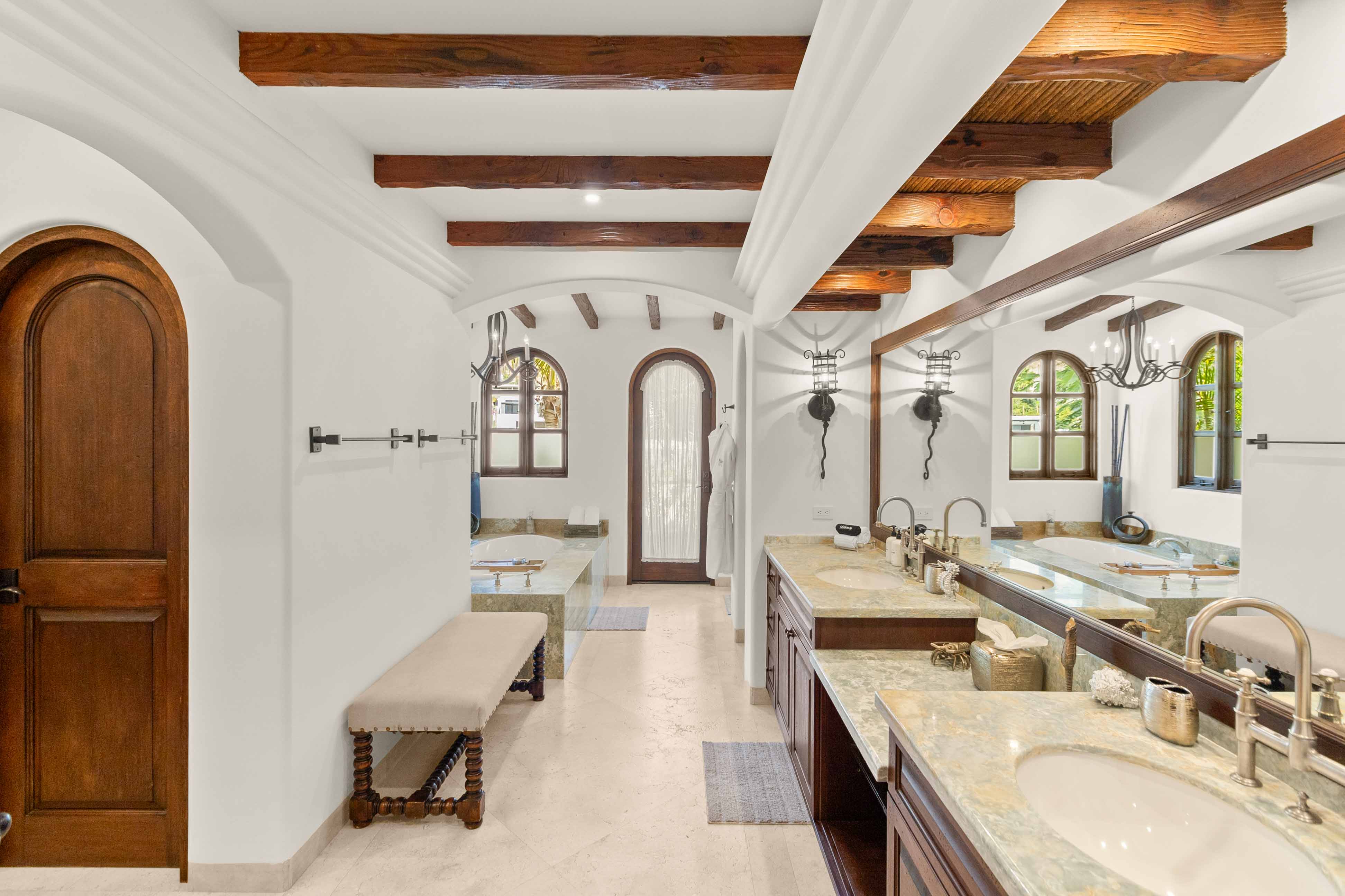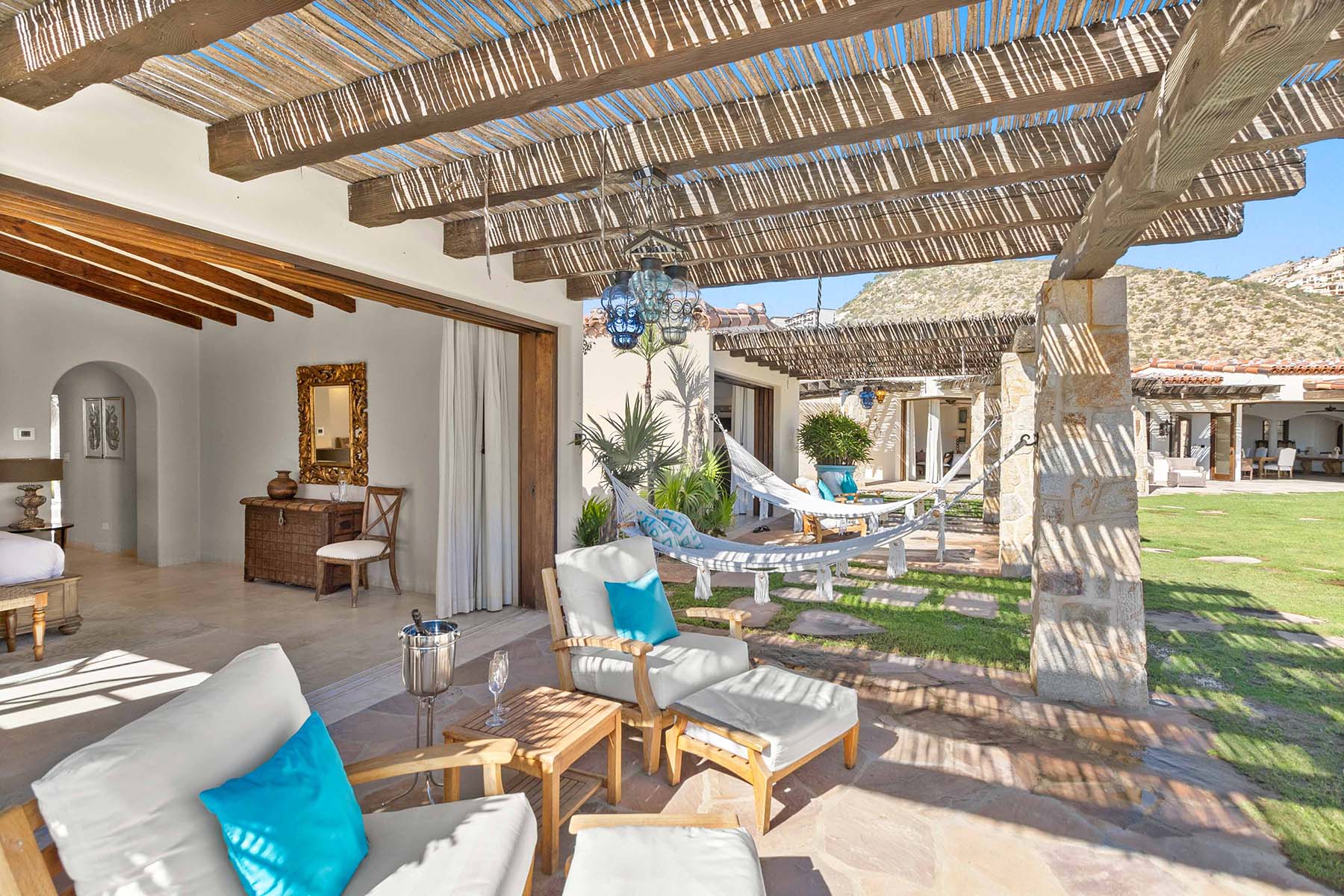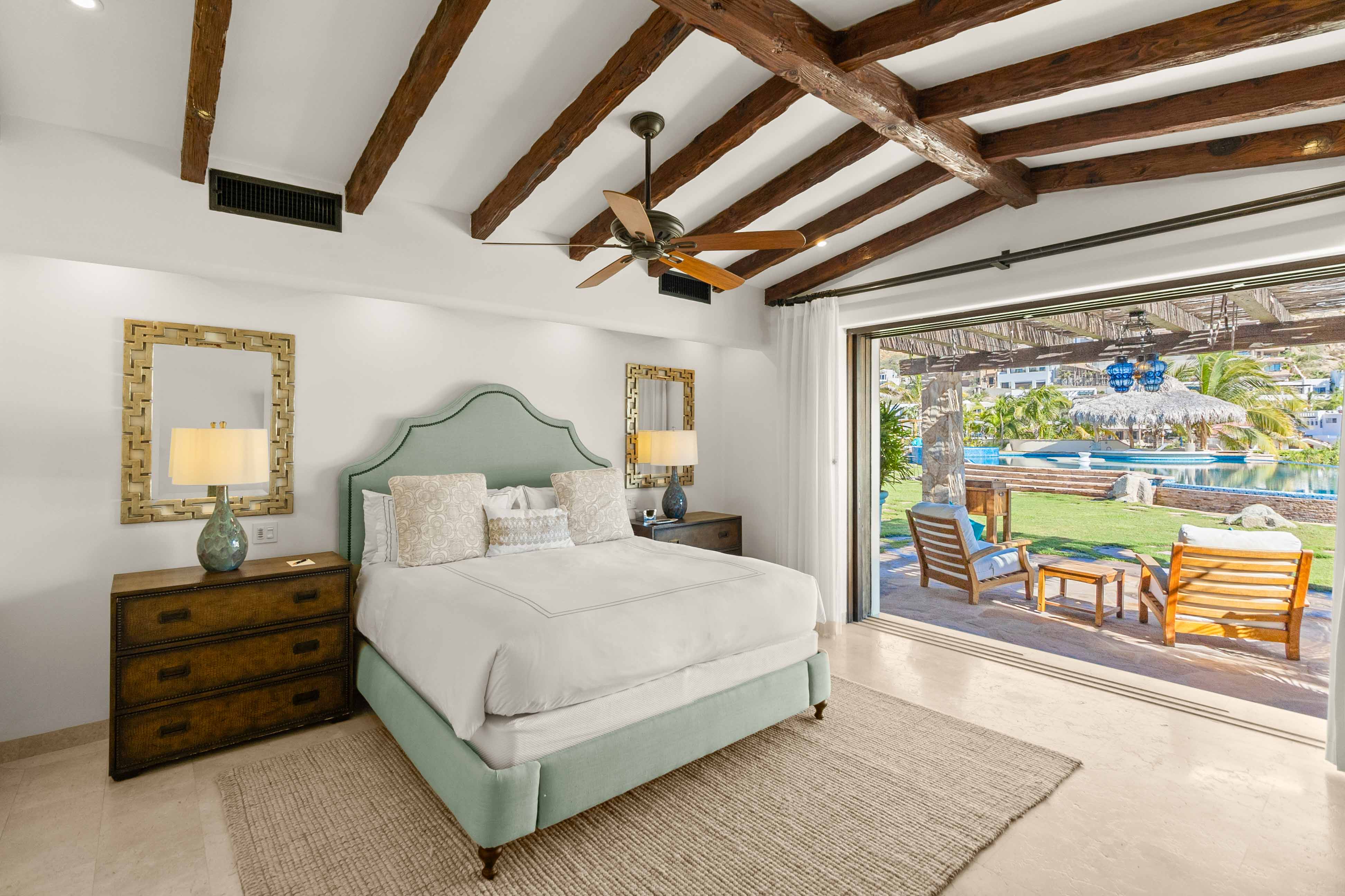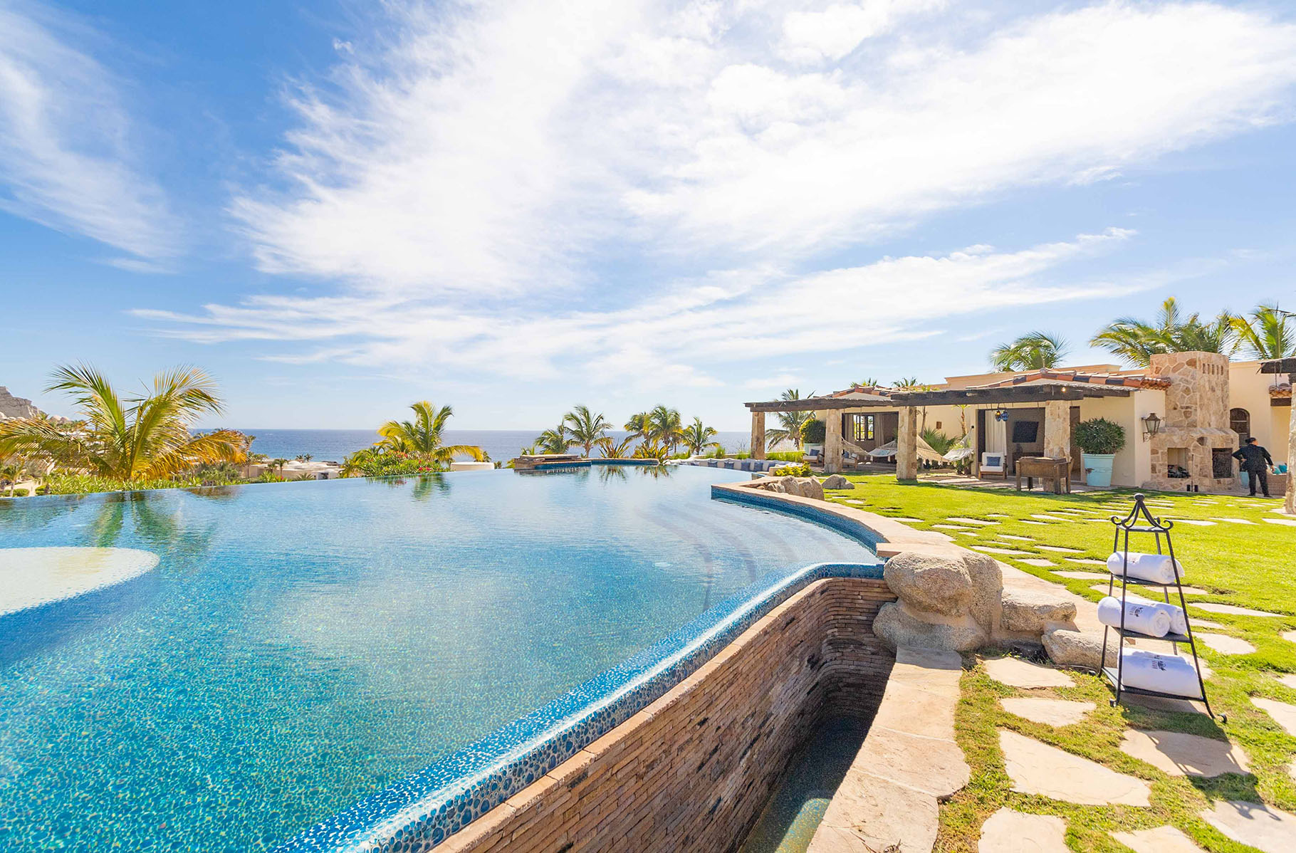 Set across four hillside lots inside a prestigious, elevated community in Cabo San Lucas known as “The Beverly Hills of Cabo,” Casa de Karma commands cinematic Pacific views with the quiet of Pedregal’s cobblestone streets and old-world charm — yet sits just minutes from downtown. Contemporary Mediterranean design brings vaulted ceilings, stone textures, and warm neutrals together in a single-level layout that opens wide to the ocean air. A chef-inspired kitchen anchors the interior, supported by a butler kitchen and full staff for those who prefer not to lift a finger while in Cabo. Outside, a custom infinity pool with swim-up bar, covered terraces, bocce, and dual ocean-view fire pits turn the terrace into the home’s social stage. Daily service by a private culinary team, butlers, housekeeping, and a dedicated concierge frames the entire experience.