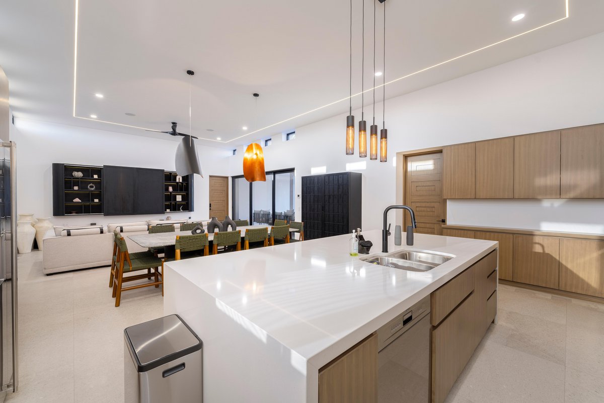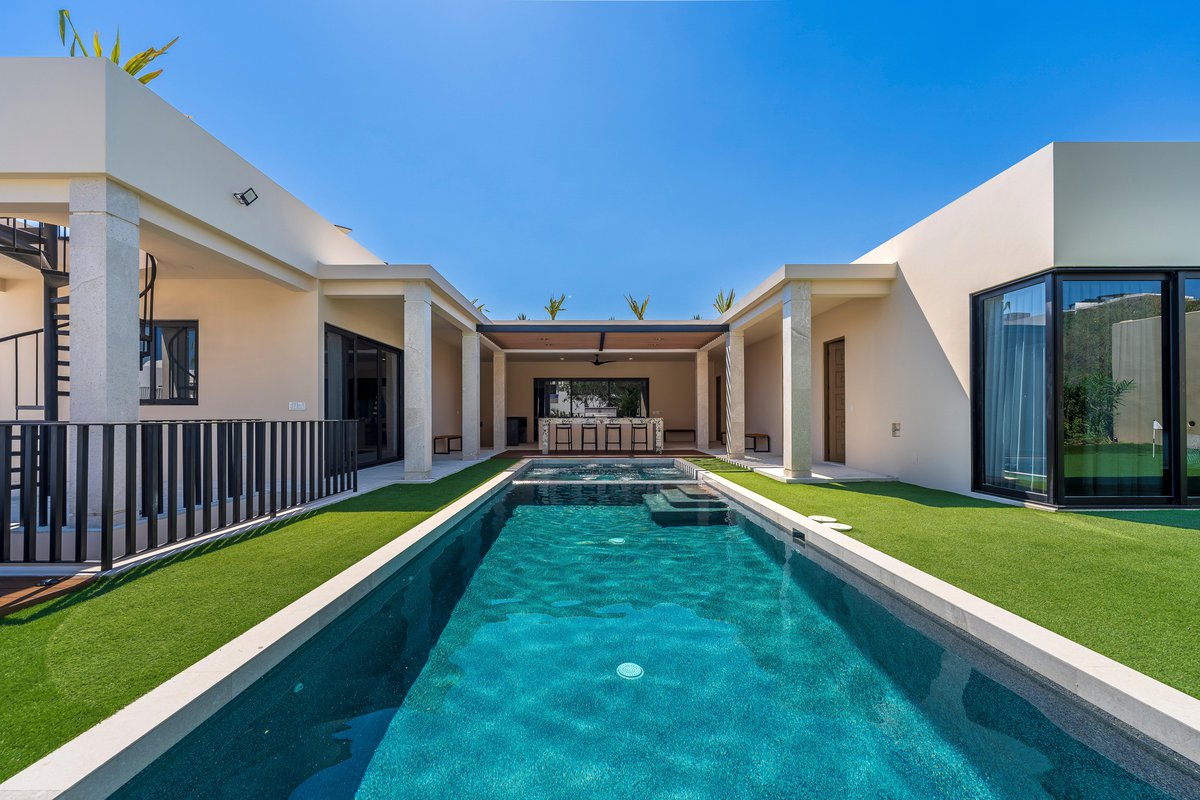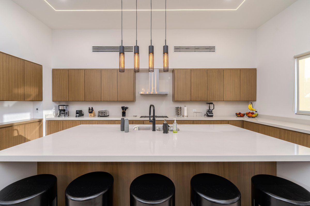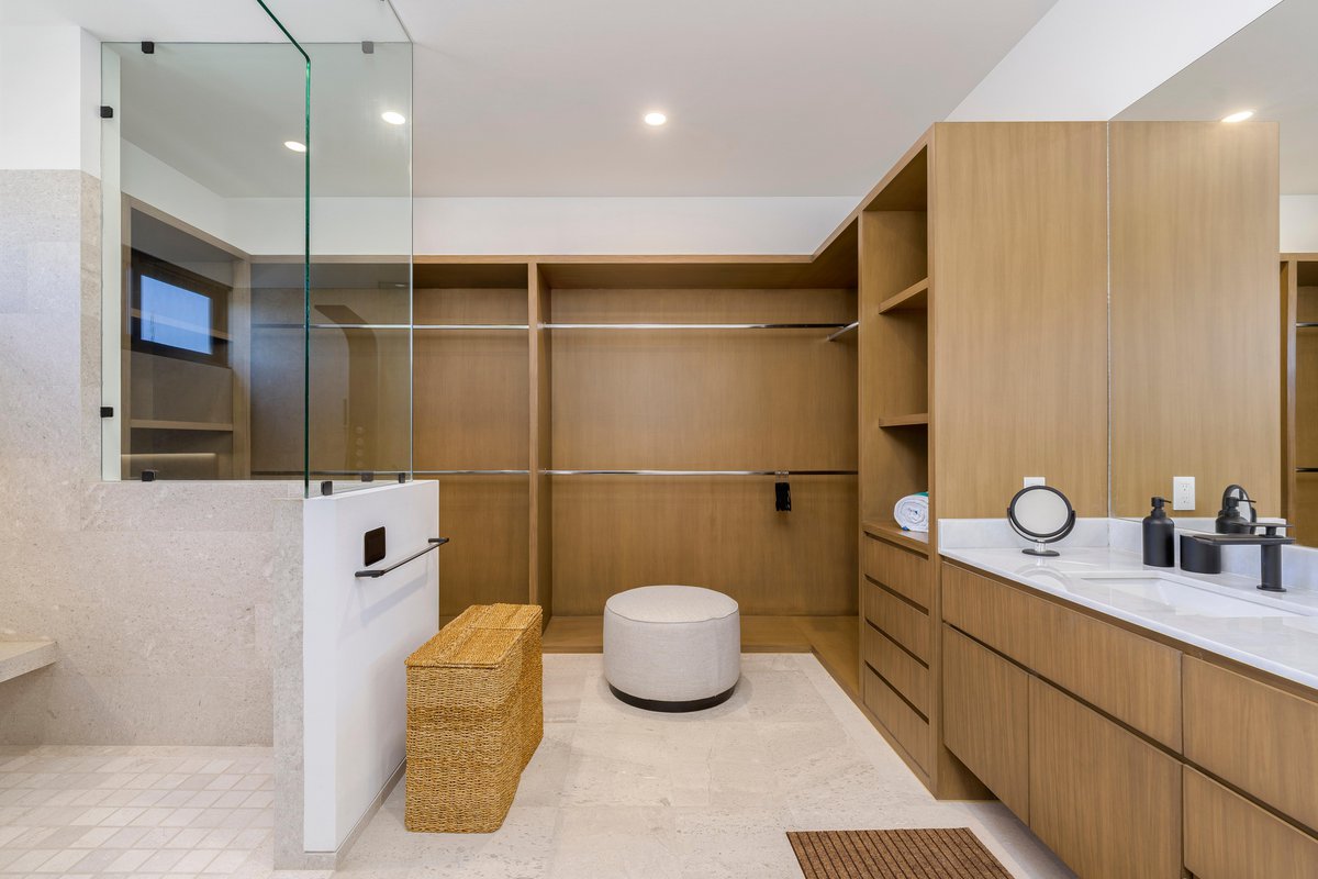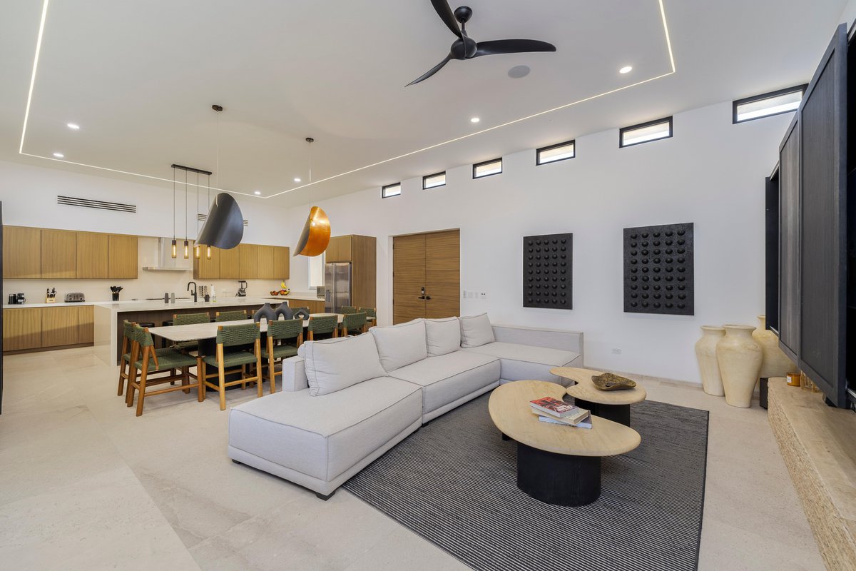 Perched in the gated community of Cresta del Mar, this villa was designed for slow mornings, golden sunsets, and everything in between. Outside, you’ll find a private pool and hot tub, a rooftop lounge with panoramic views, and multiple spaces made for gathering—like the firepit deck, alfresco dining area, and a shaded outdoor bar under the pergola.