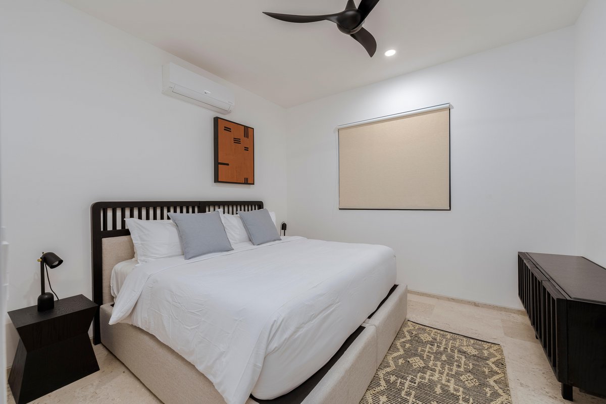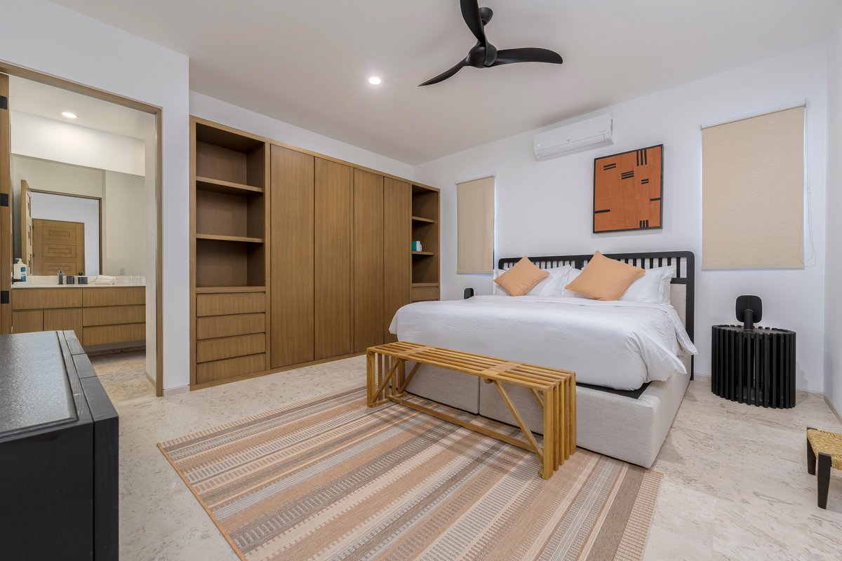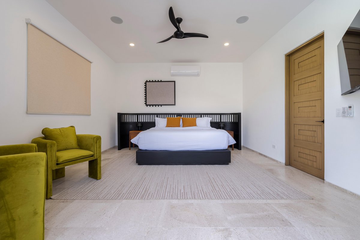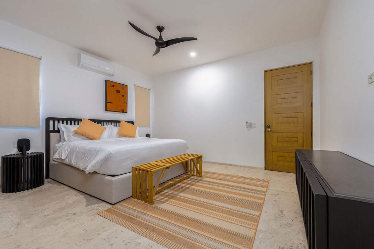Inside, the villa is a blend of clean design and cozy textures. Floor-to-ceiling windows keep the space bright, while the fully equipped kitchen, spacious living area, and indoor dining table keep things functional and social. Every bedroom is a retreat of its own, with soft linens, natural light, and balconies made for early coffee or late-night chats.