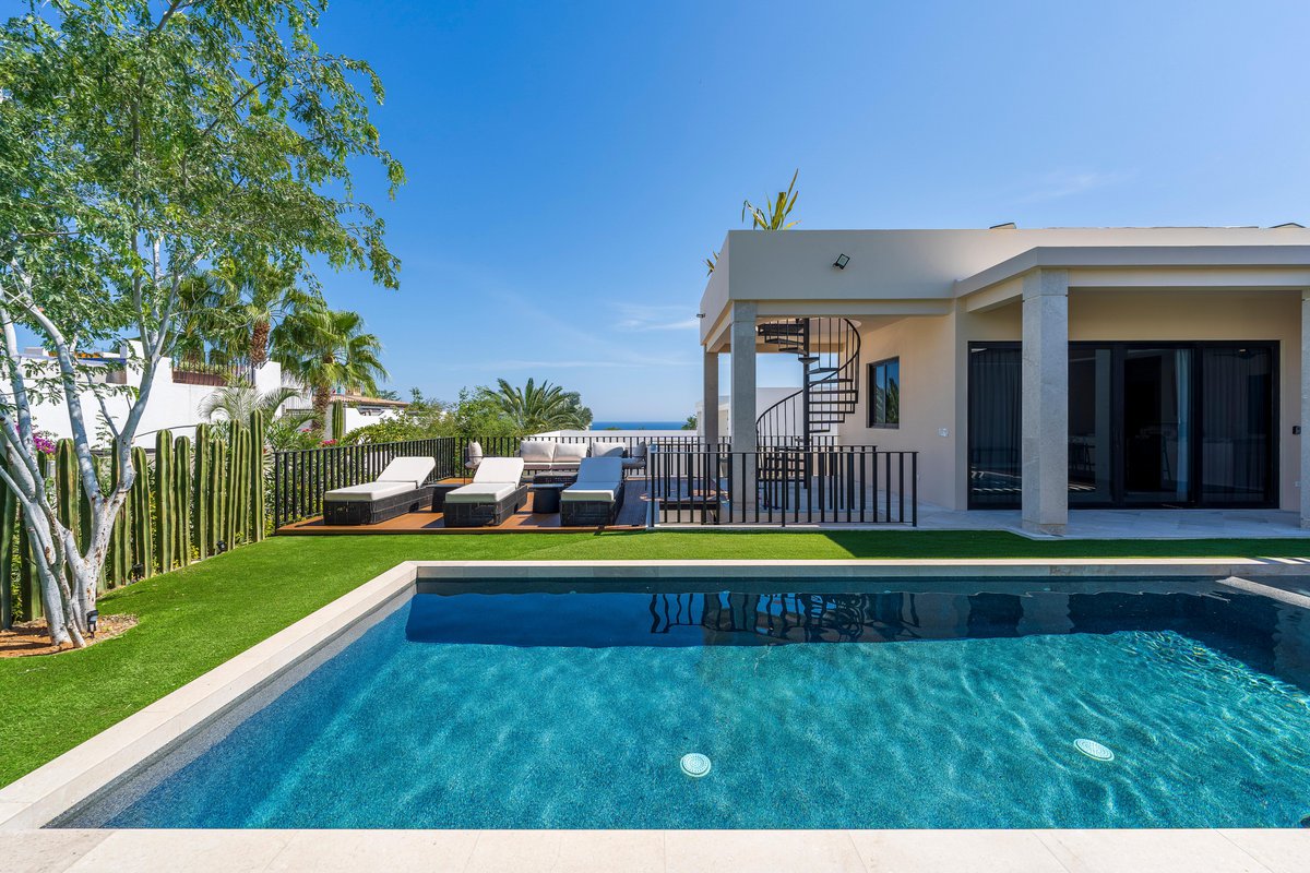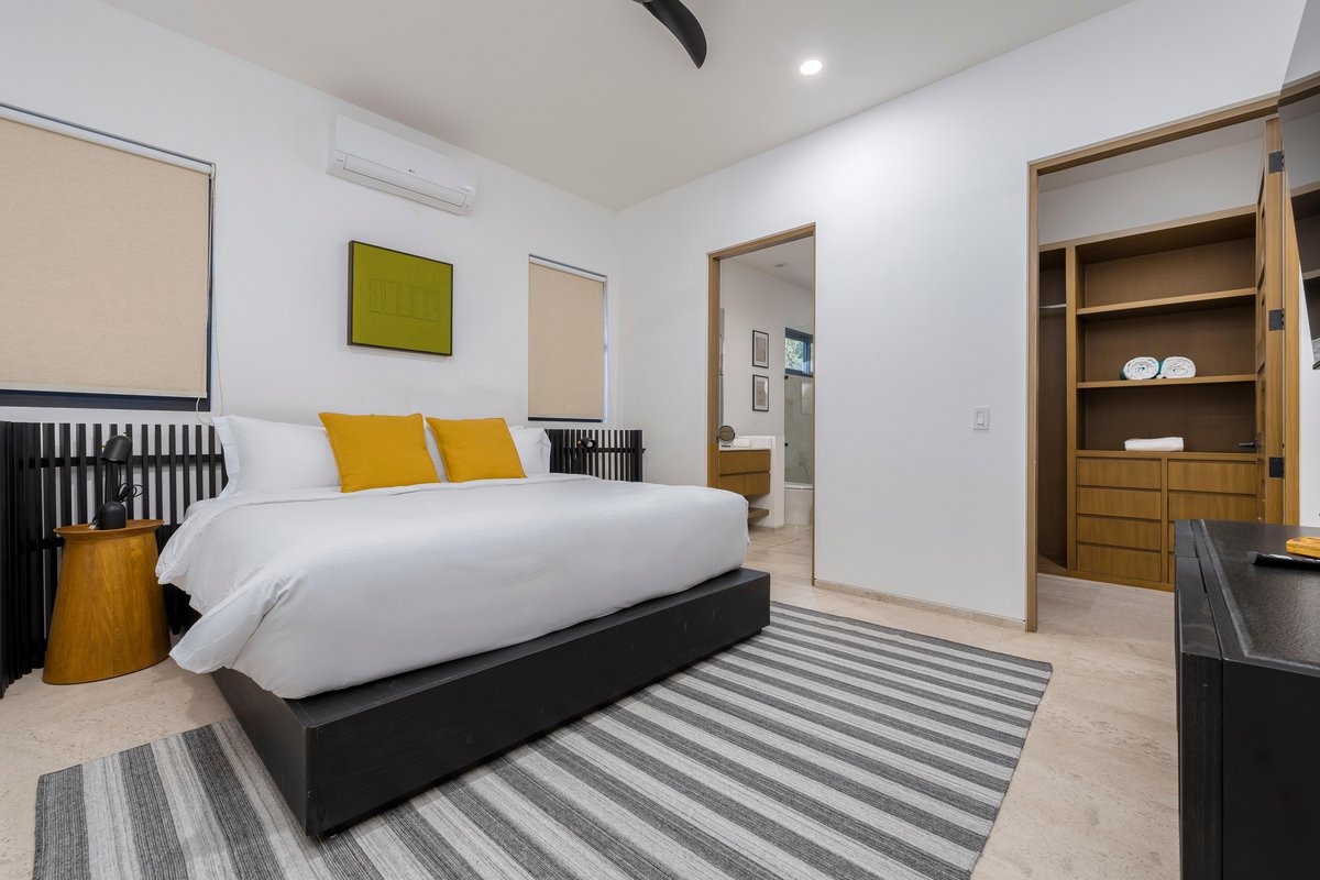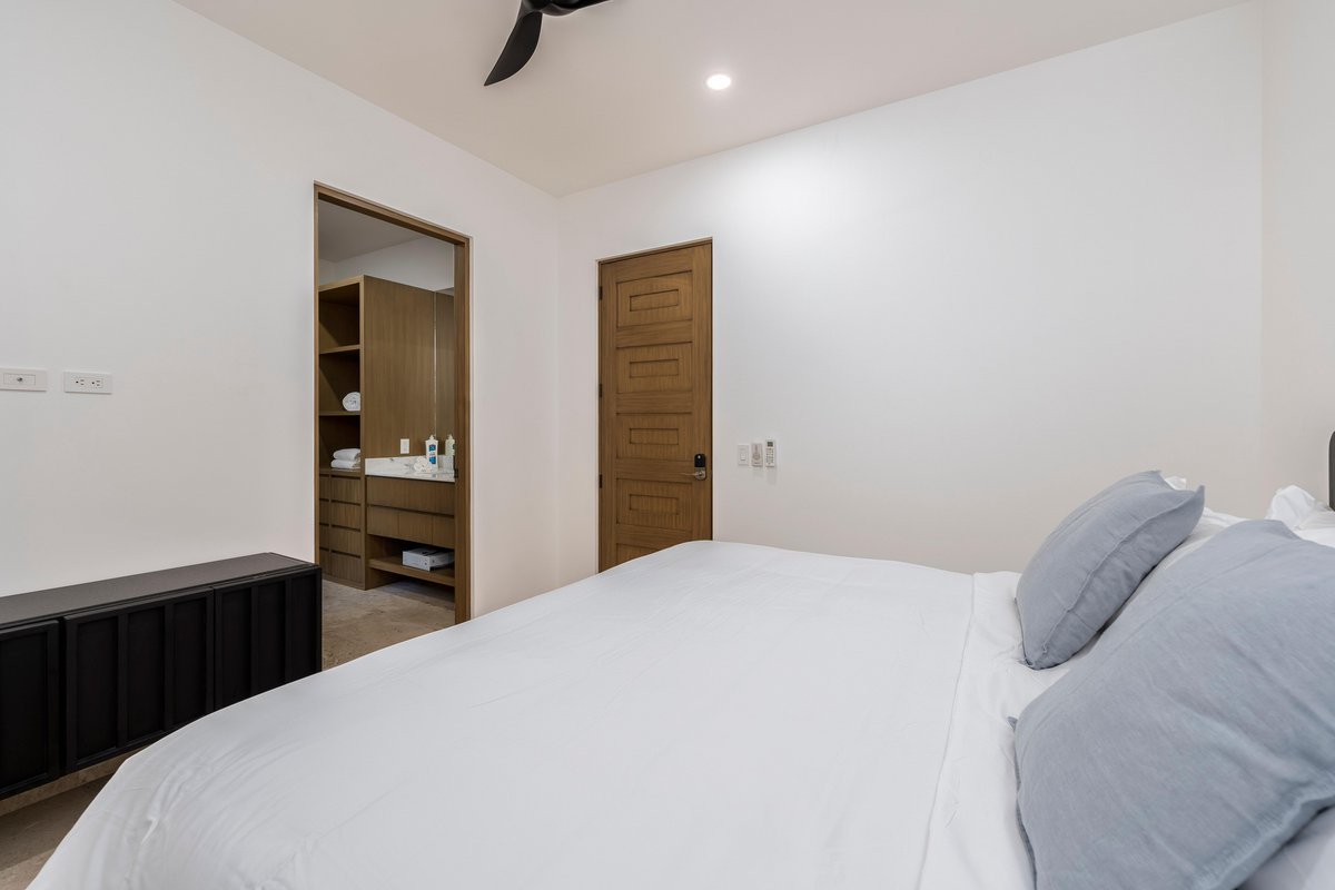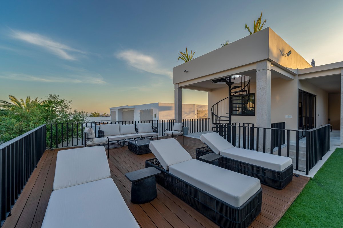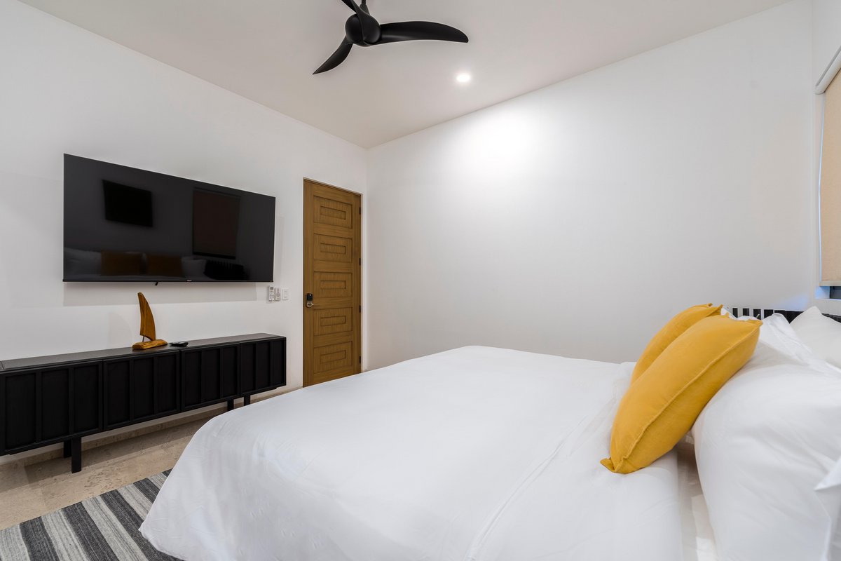 Inside, the villa is a blend of clean design and cozy textures. Floor-to-ceiling windows keep the space bright, while the fully equipped kitchen, spacious living area, and indoor dining table keep things functional and social. Every bedroom is a retreat of its own, with soft linens, natural light, and balconies made for early coffee or late-night chats.