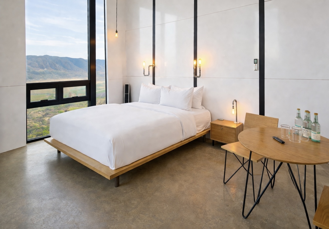 Designed for a relaxed stay, this room features a king bed for two and a private terrace overlooking the valley, ideal for slow mornings or a glass of wine at sunset. With a Mexican outdoor living feel, it blends comfort with the natural surroundings, while still offering WiFi for when you need it. You’re just a short walk from the panoramic pool and restaurant, making it easy to enjoy everything Encuentro has to offer.