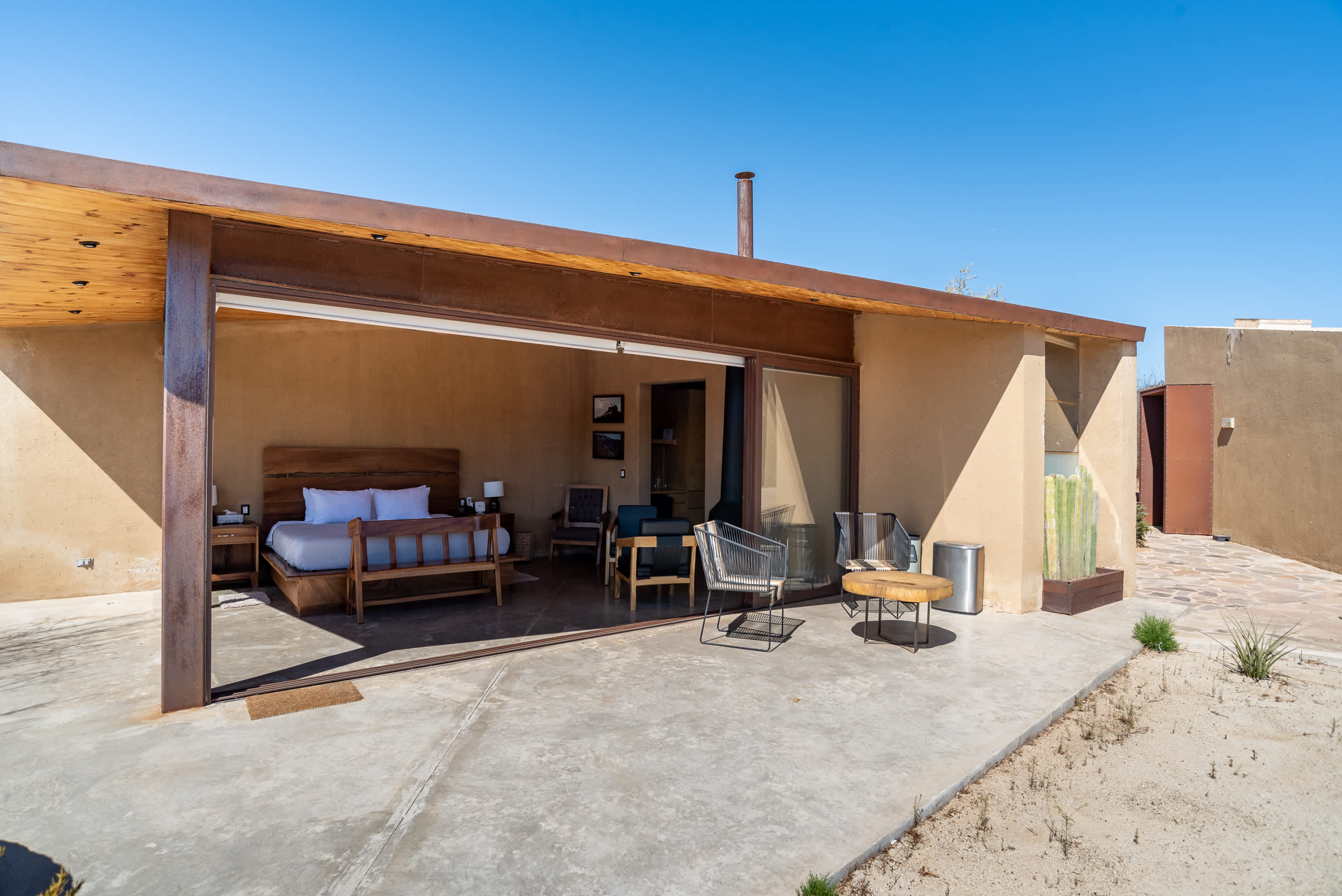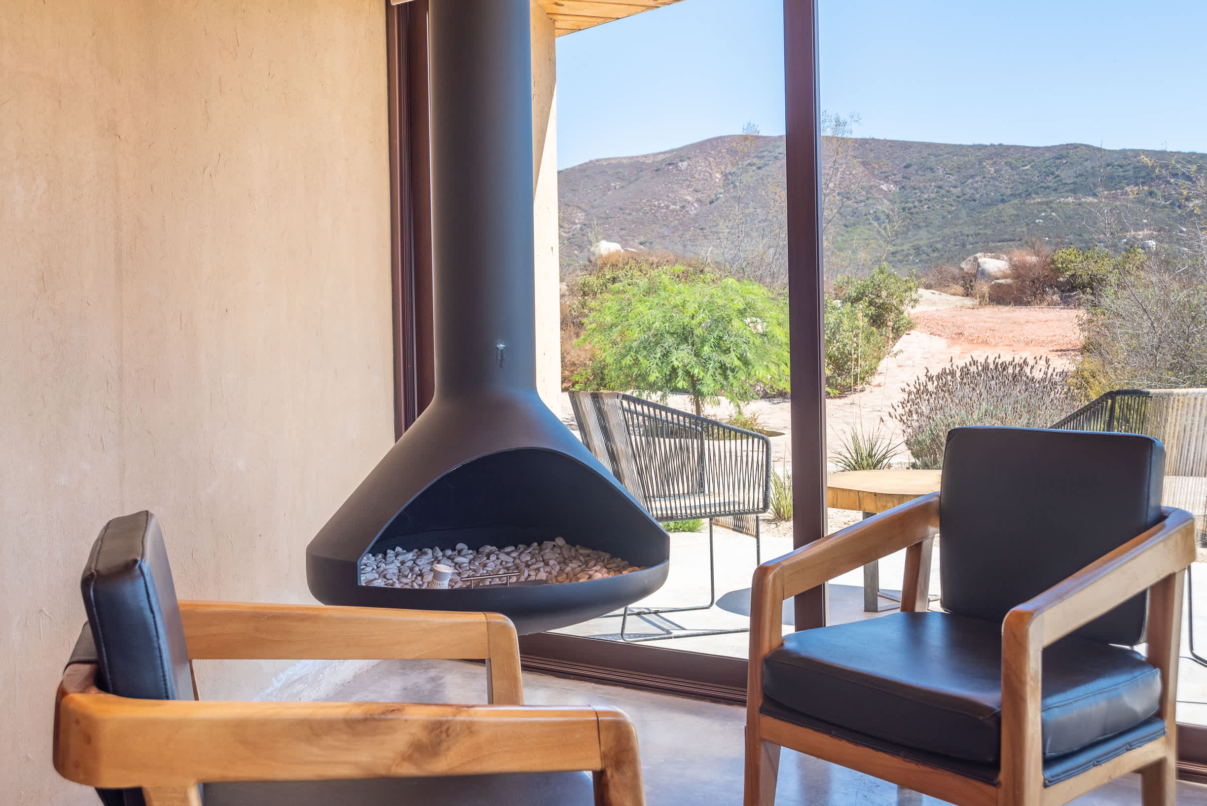 Inside, you’ll find a luxurious king-size bed, a lounge seating area, a TV, an indoor fireplace, and a minibar with complimentary refreshments. The private terrace features a seating area, perfect for relaxing while enjoying the serene surroundings.