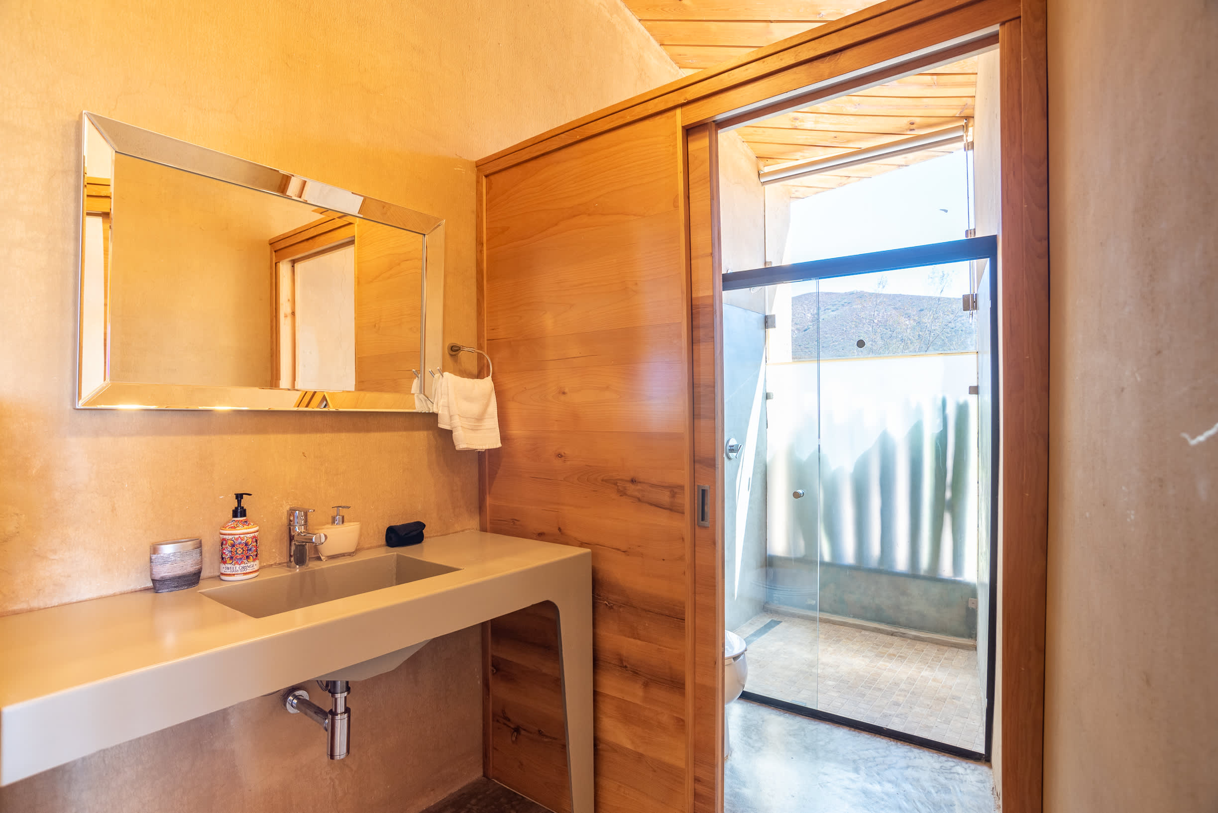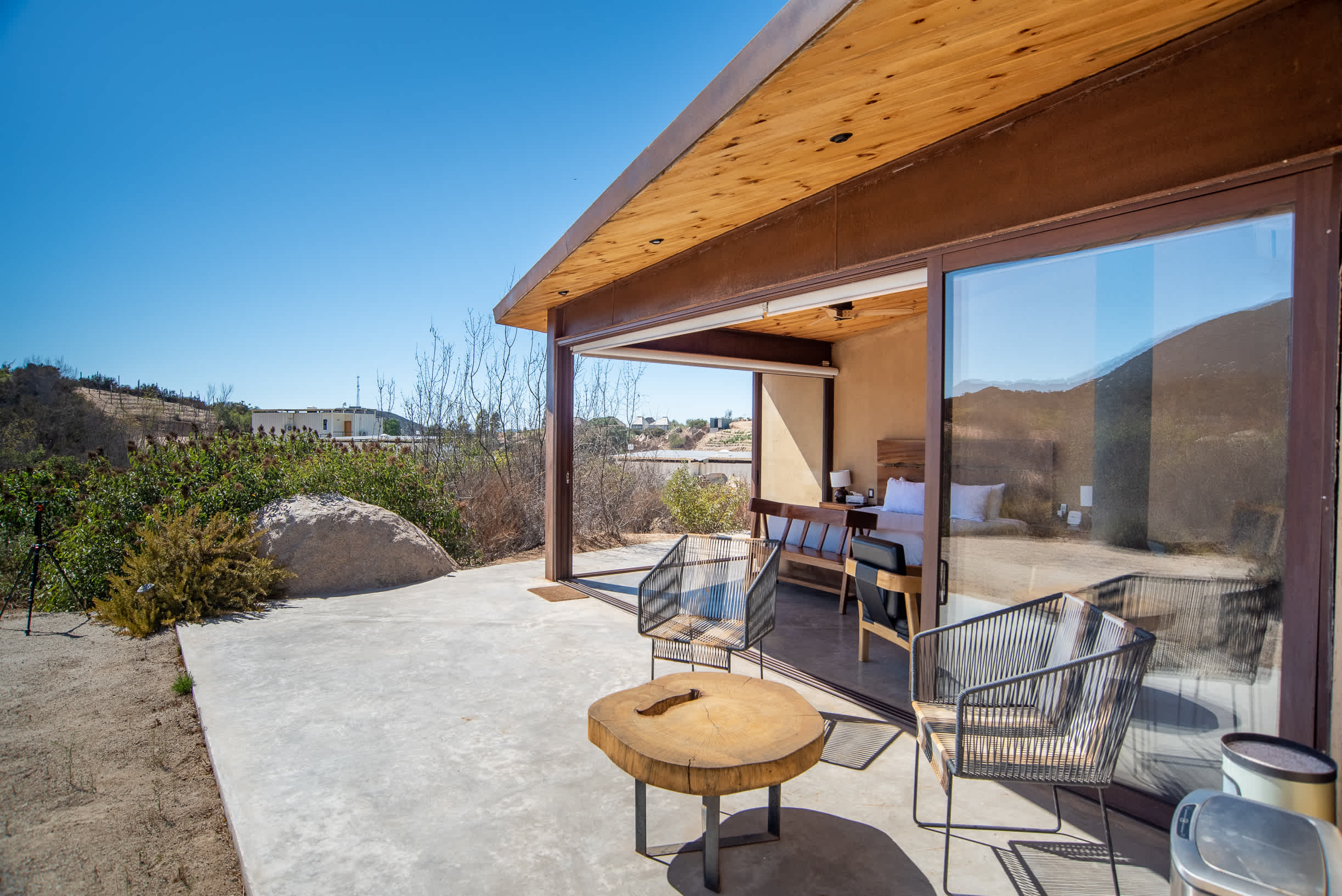 This contemporary retreat blends modern comfort with rustic elegance, offering stunning vineyard views in a tranquil setting. Designed to harmonize with the natural landscape, the cabin provides a peaceful escape.