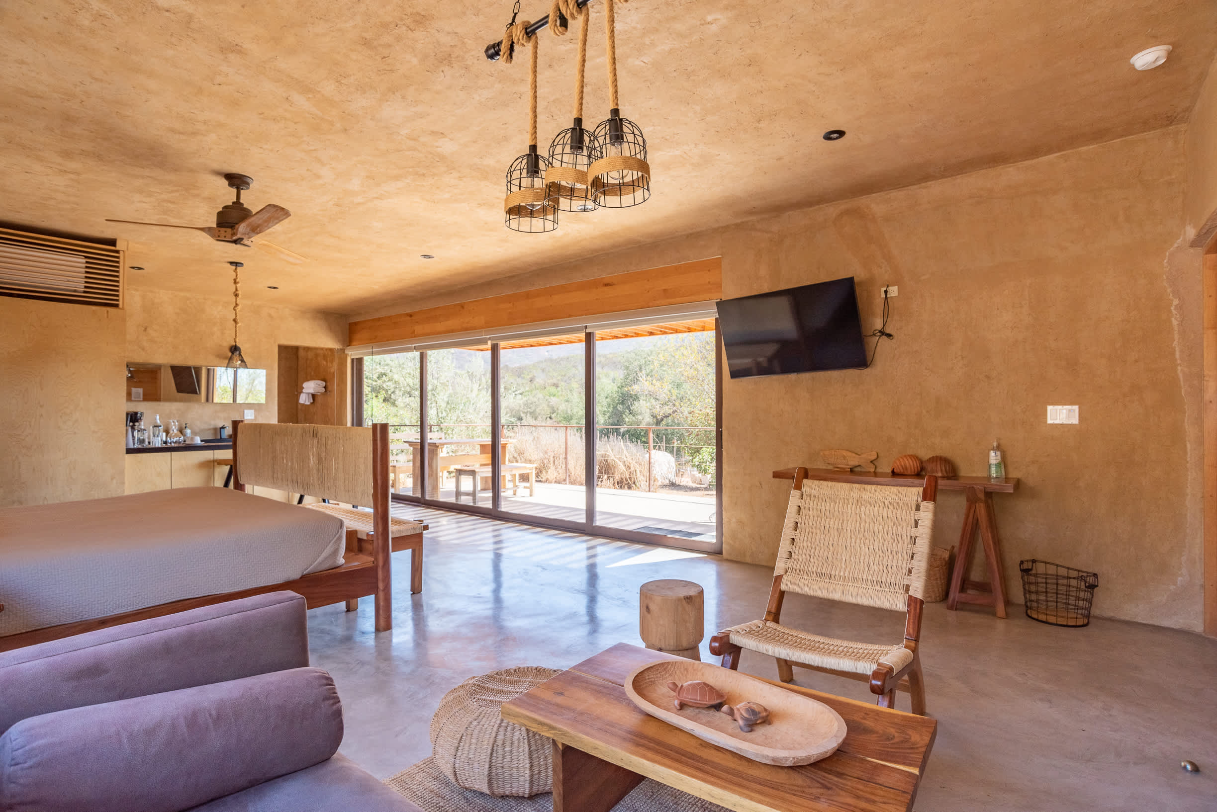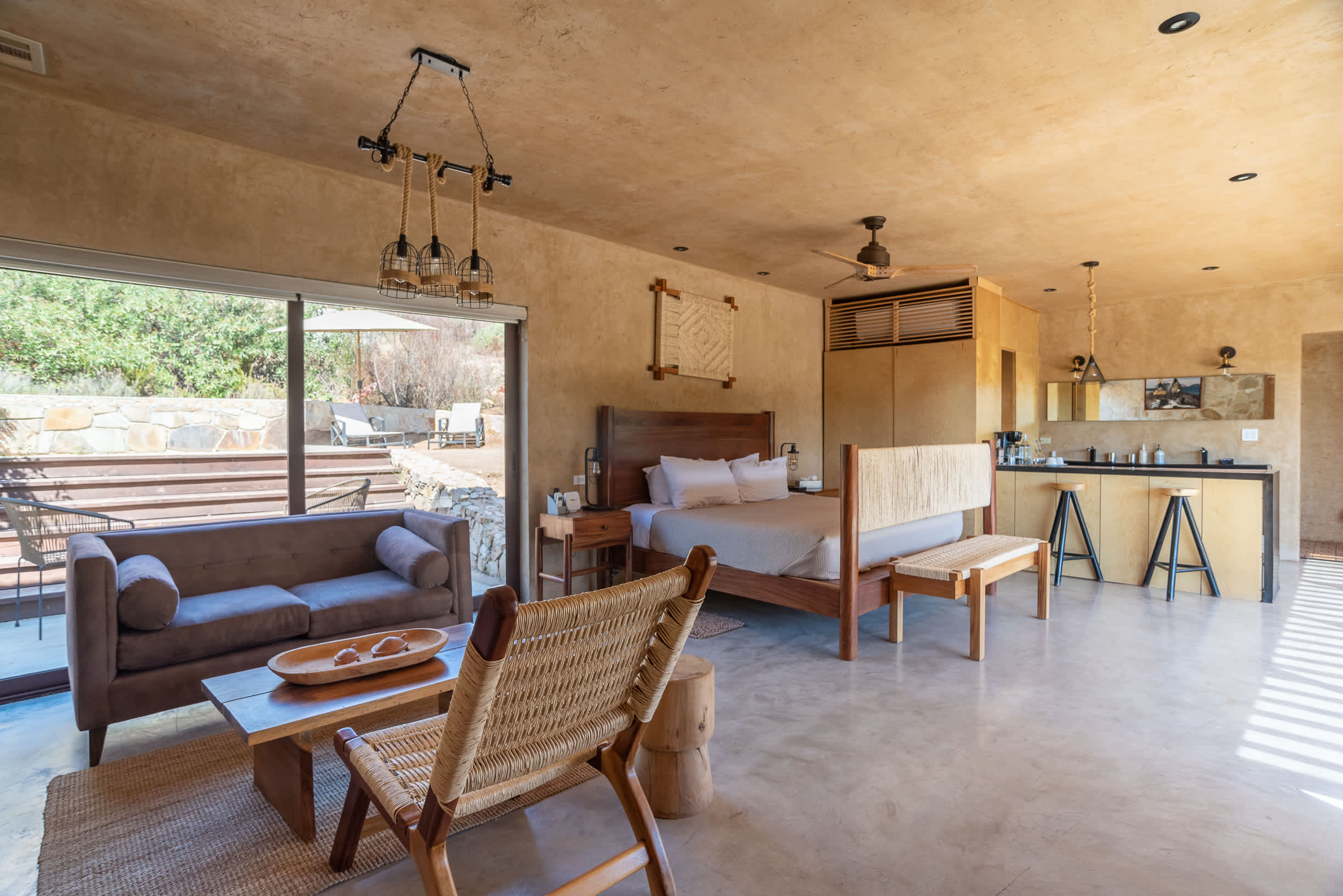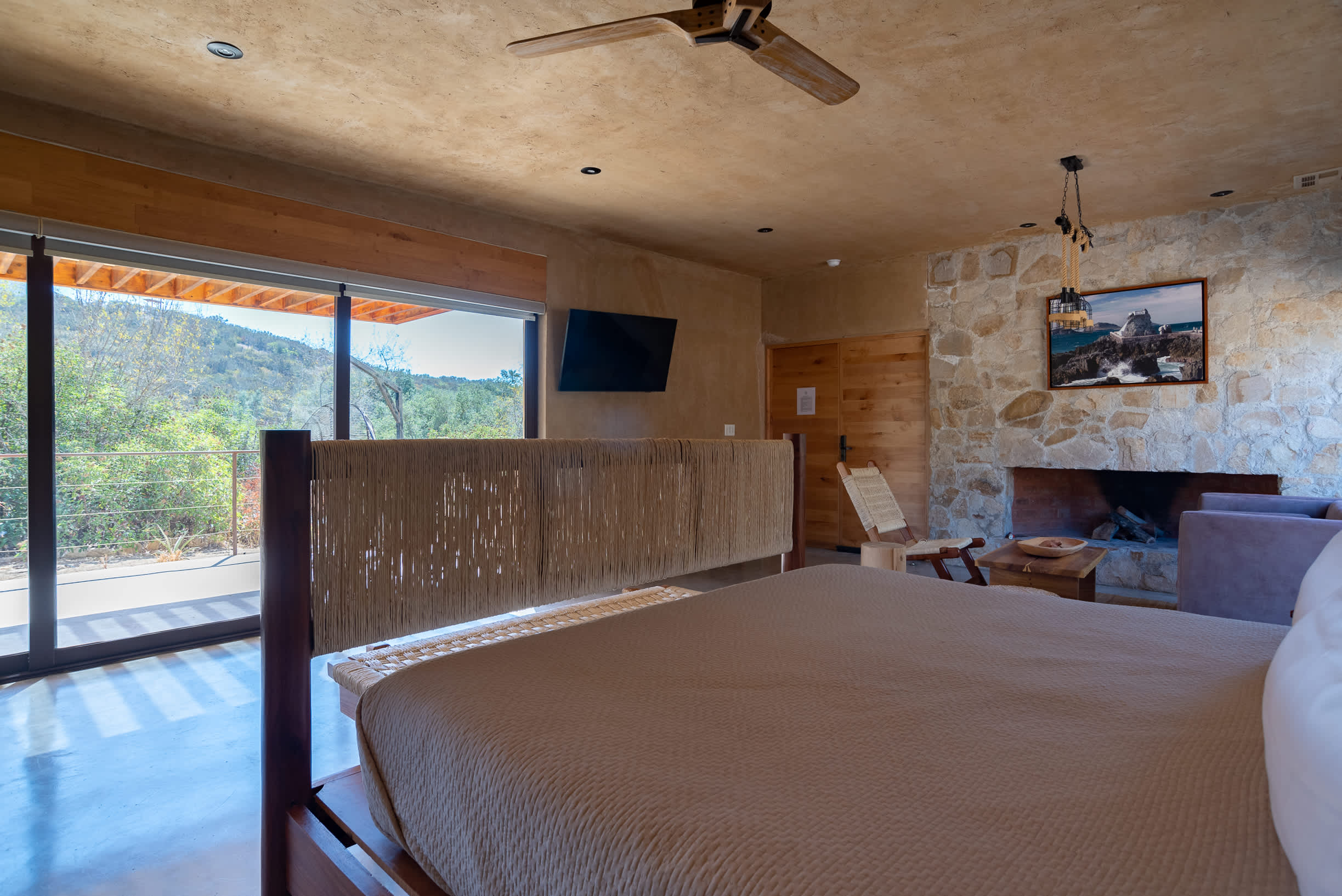 Inside, you’ll find a luxurious king-size bed, a lounge seating area, a TV, an indoor fireplace, and a minibar with complimentary refreshments. The private terrace features a jacuzzi, perfect for relaxing while enjoying the serene surroundings.