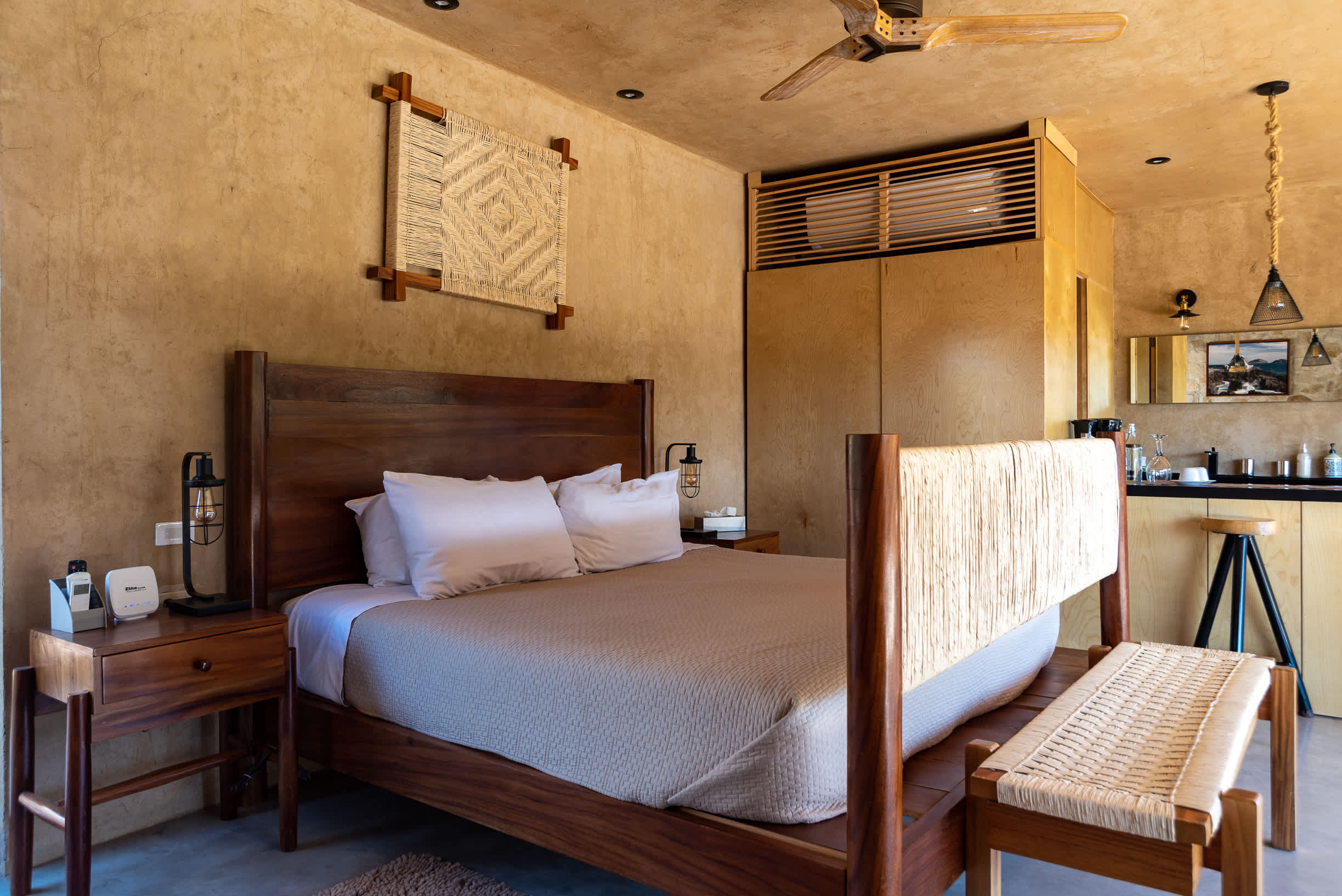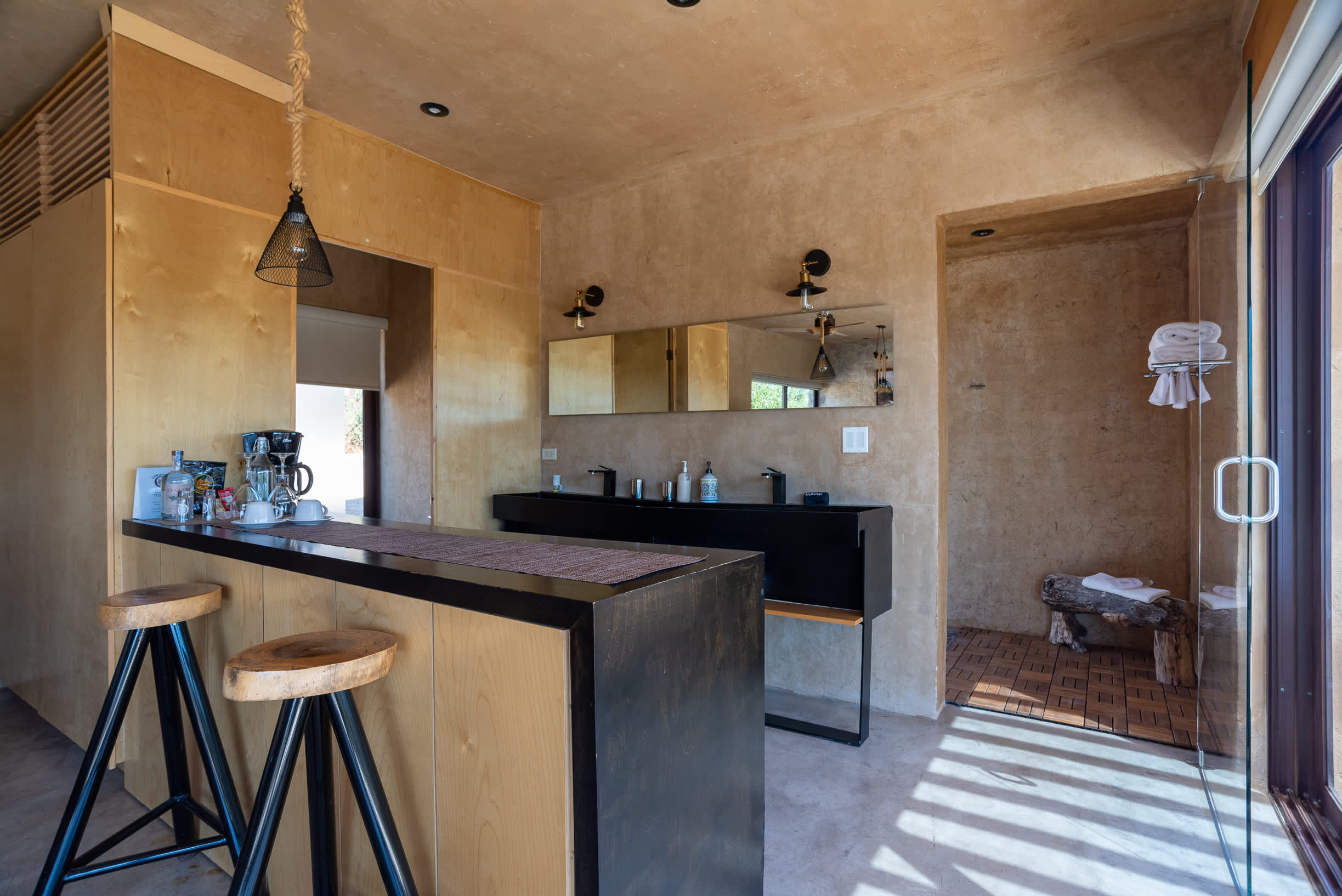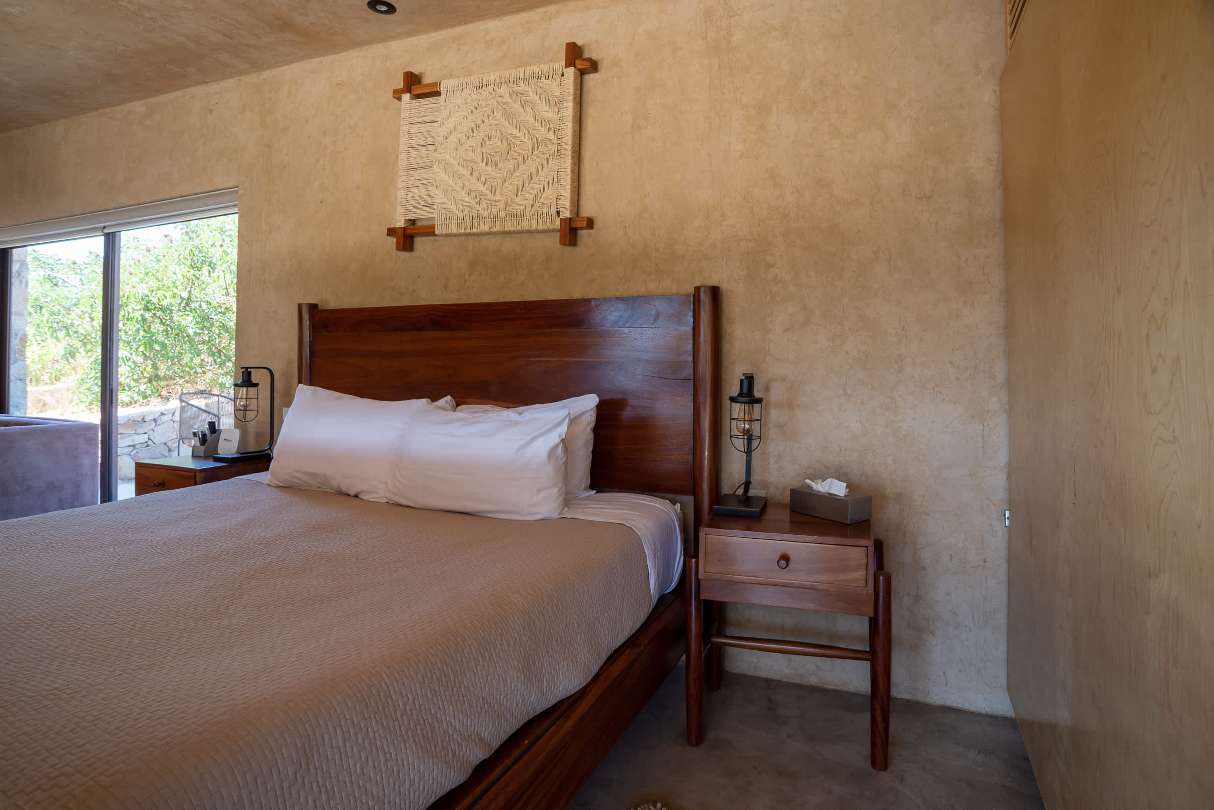Inside, you’ll find a luxurious king-size bed, a lounge seating area, a TV, an indoor fireplace, and a minibar with complimentary refreshments. The private terrace features a jacuzzi, perfect for relaxing while enjoying the serene surroundings.