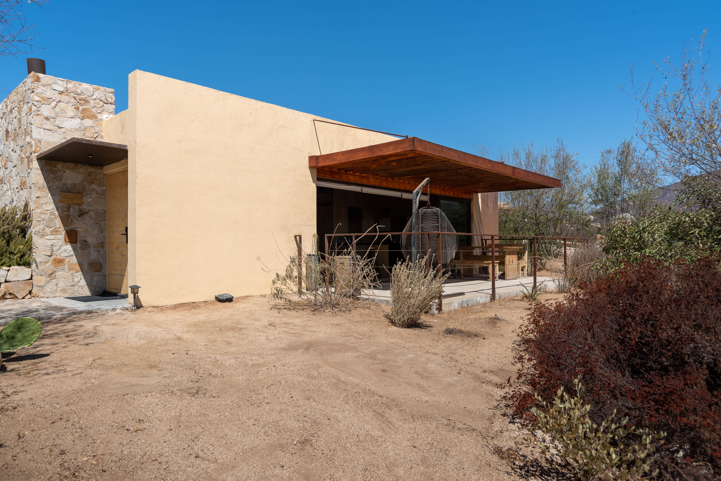 This contemporary retreat blends modern comfort with rustic elegance, offering stunning vineyard views in a tranquil setting. Designed to harmonize with the natural landscape, the cabin provides a peaceful escape.