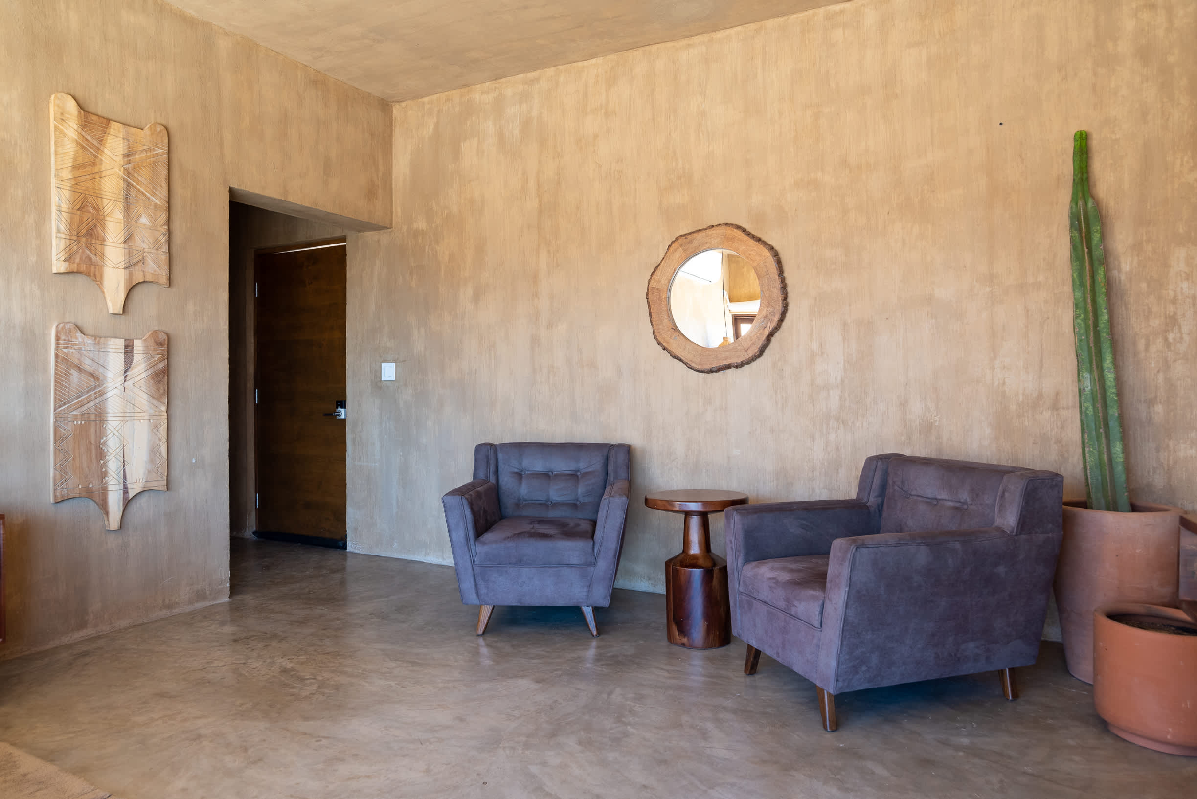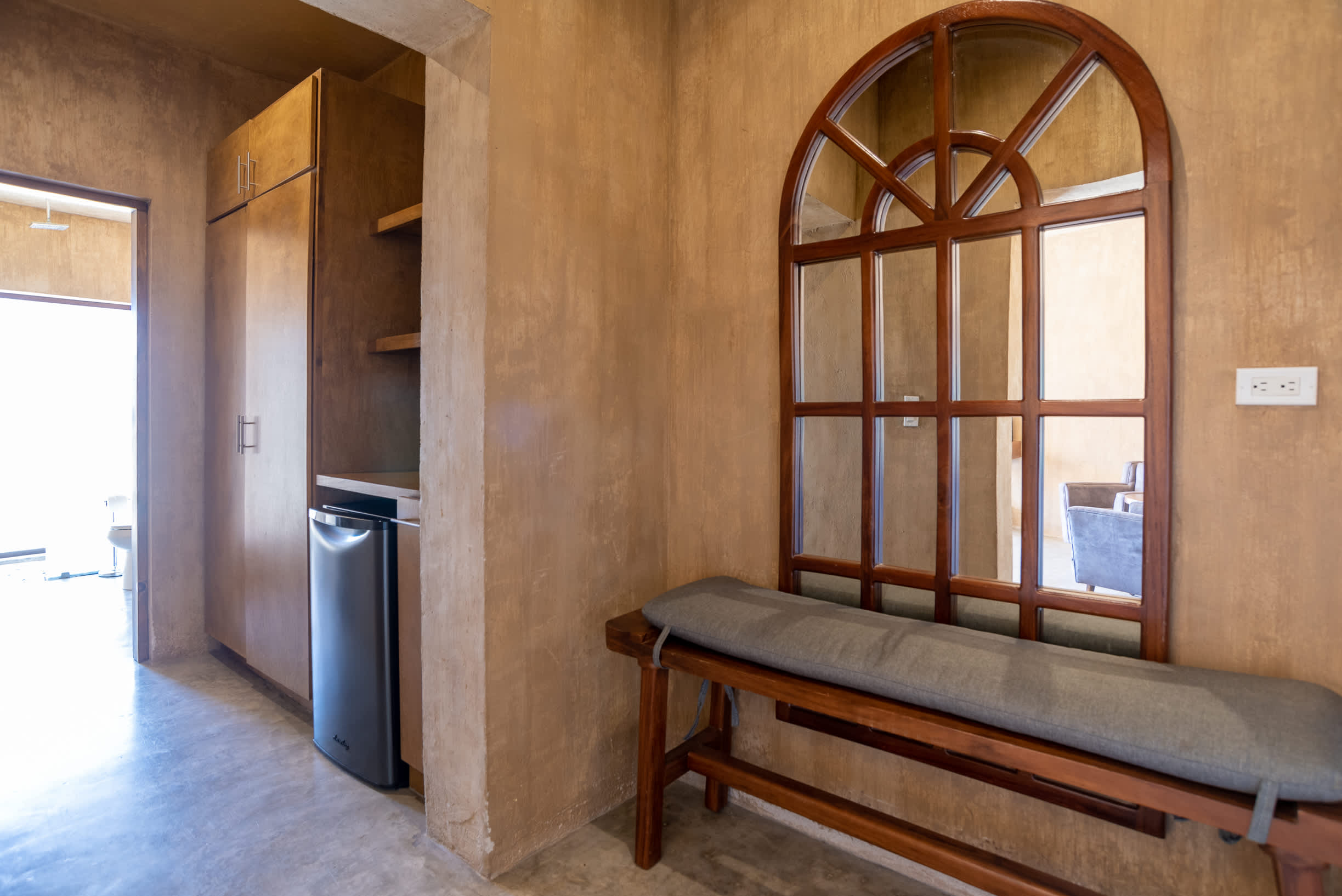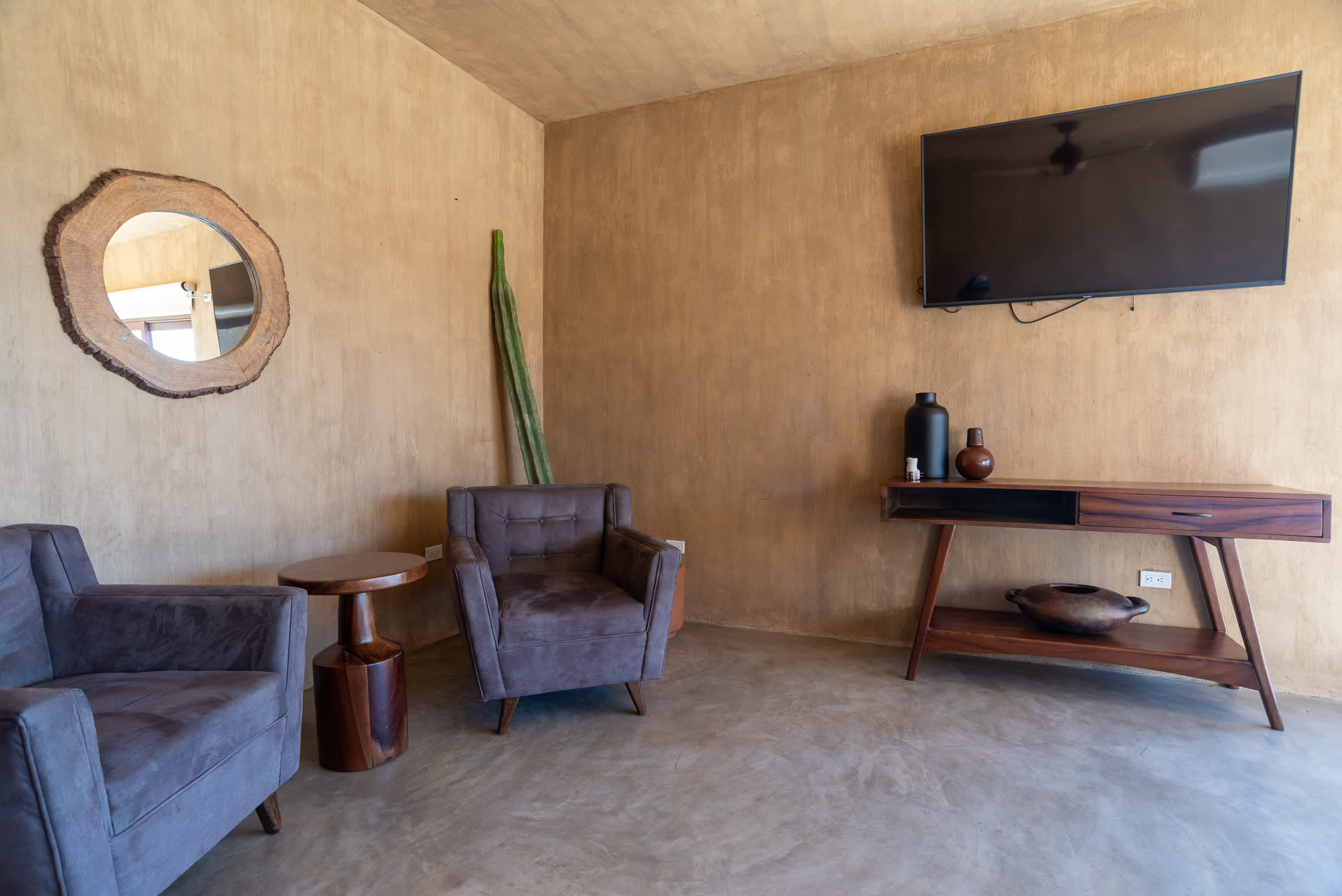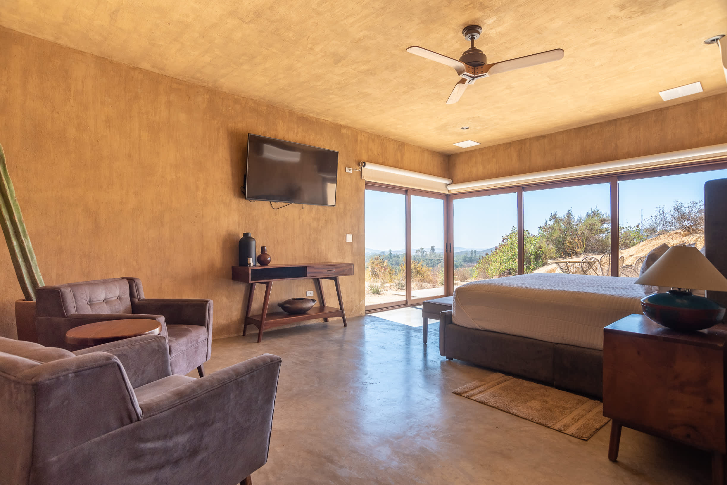 Inside, you'll find a luxurious king-size bed with top-quality linens, a full bathroom, a TV for your entertainment, and a minibar stocked with complimentary refreshments. Step out onto your private terrace, complete with a seating area, where you can relax and enjoy the amazing views.