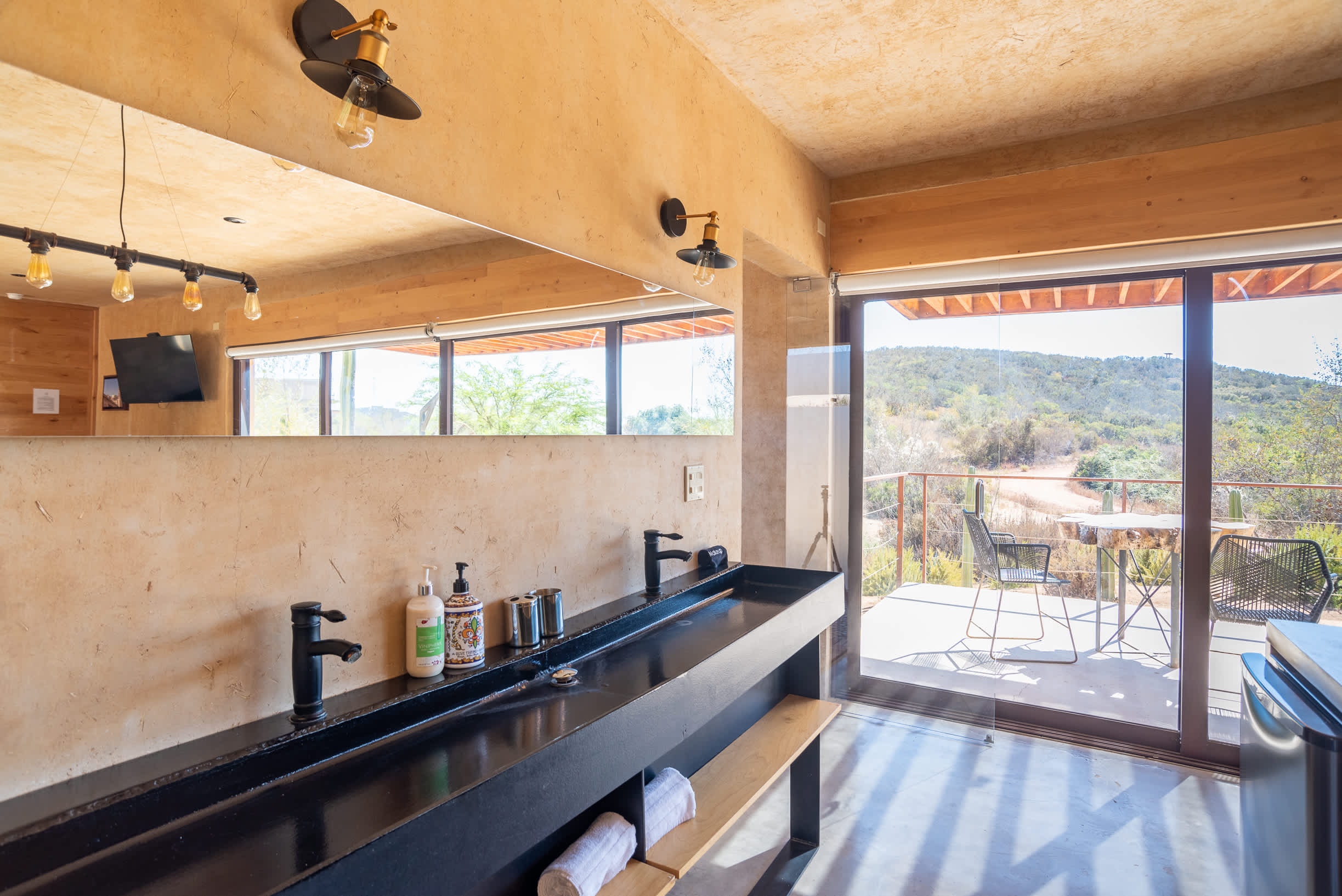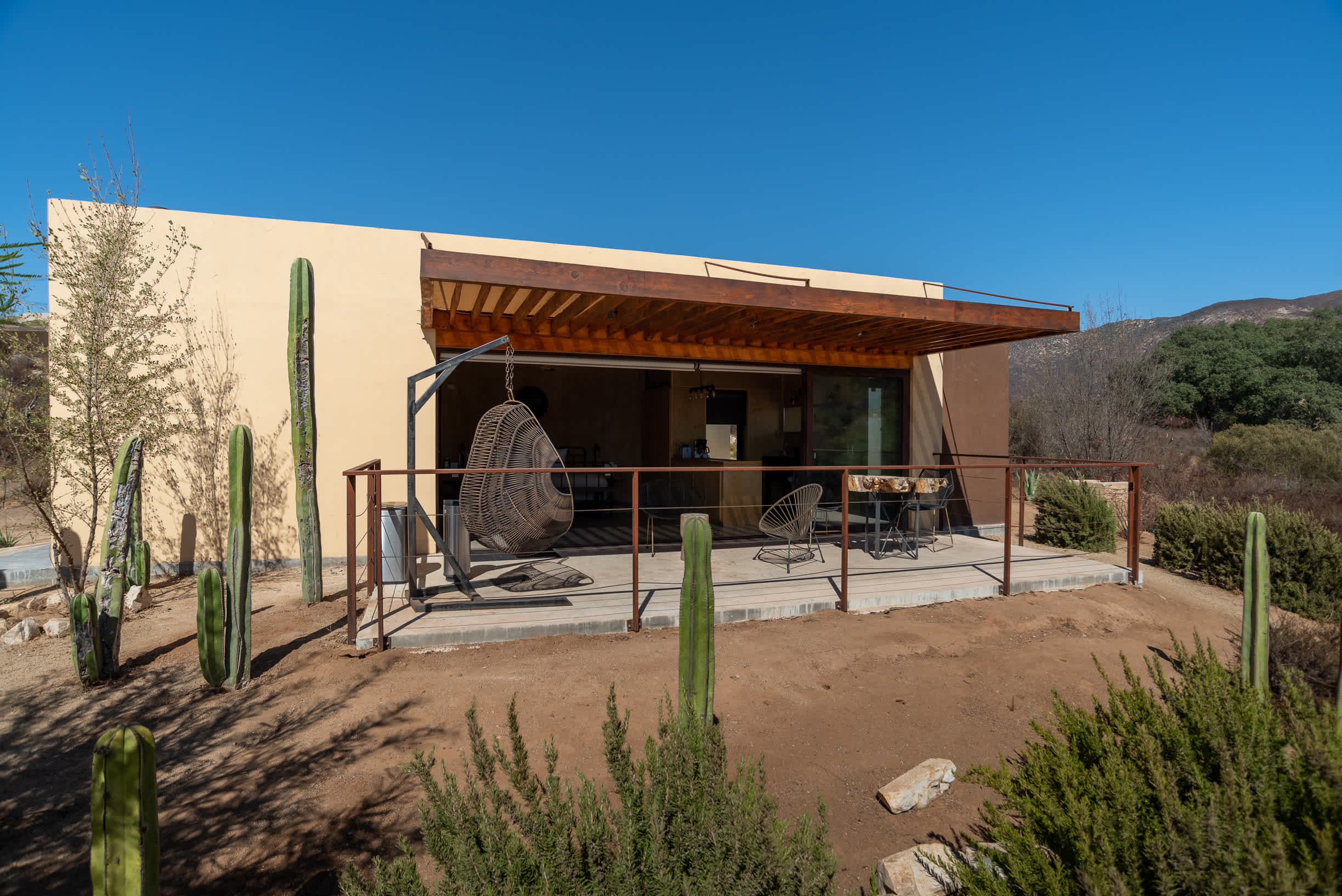 This contemporary retreat blends modern comfort with rustic elegance, offering stunning vineyard views in a tranquil setting. Designed to harmonize with the natural landscape, the cabin provides a peaceful escape.