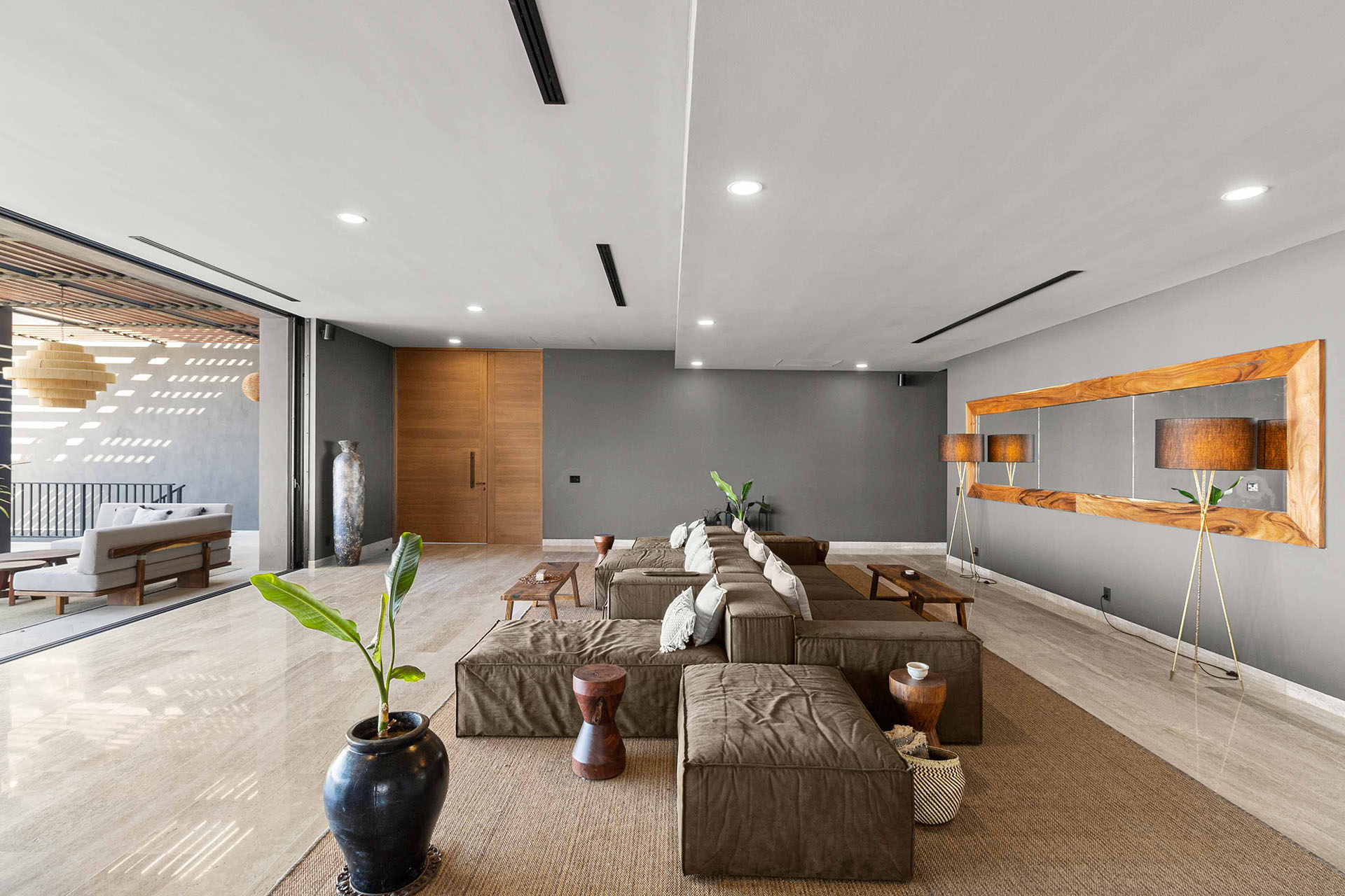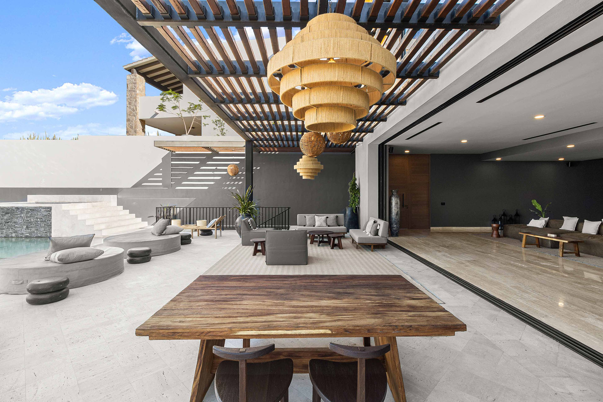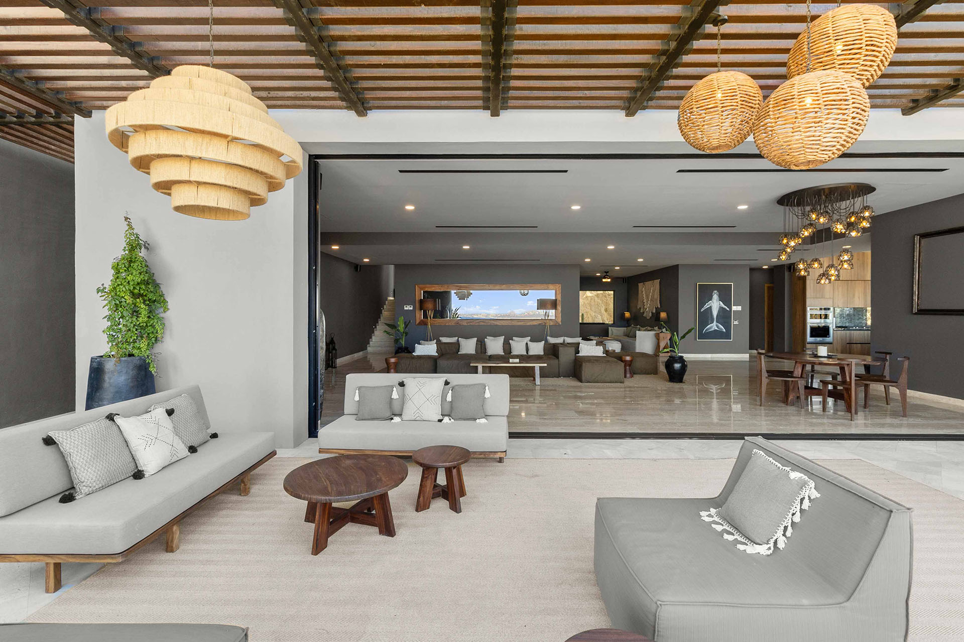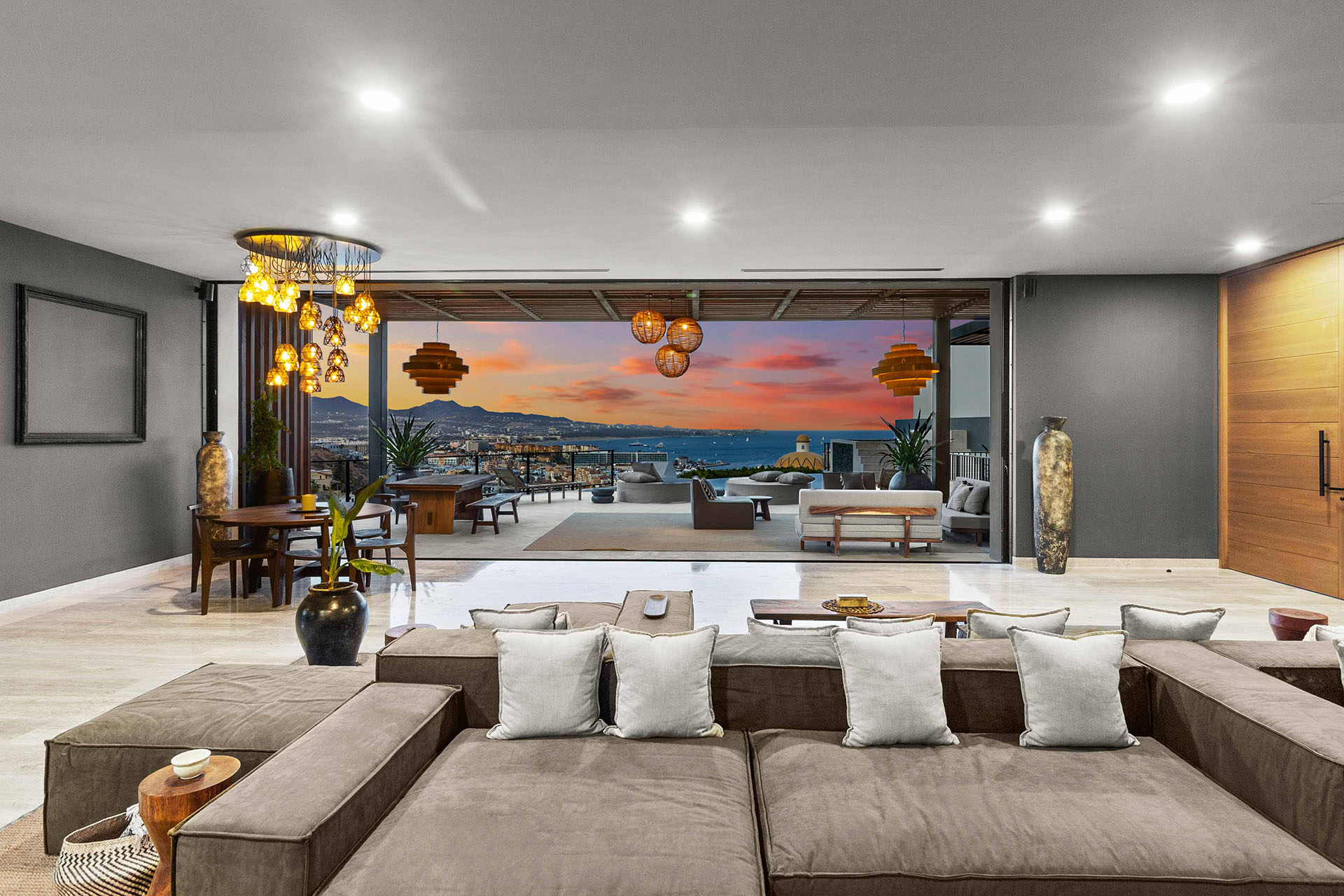 Where modern design meets coastal indulgence, Lucia Noir brings a bold new energy to Cabo’s most prestigious community — Pedregal, often called the Beverly Hills of Cabo. This striking 8-bedroom villa celebrates contemporary style with a palette of aztec gold, smoky black, and decorator’s white, creating a space that feels sleek, daring, and completely one of a kind.