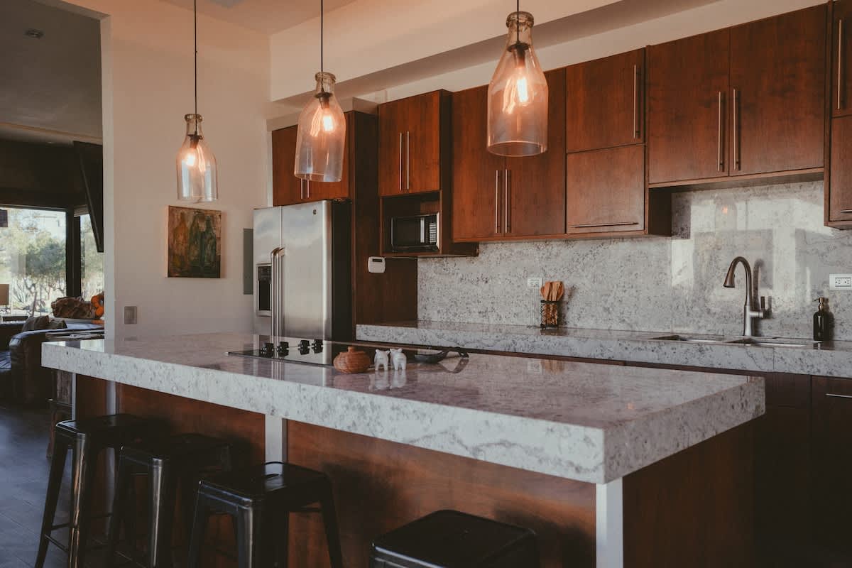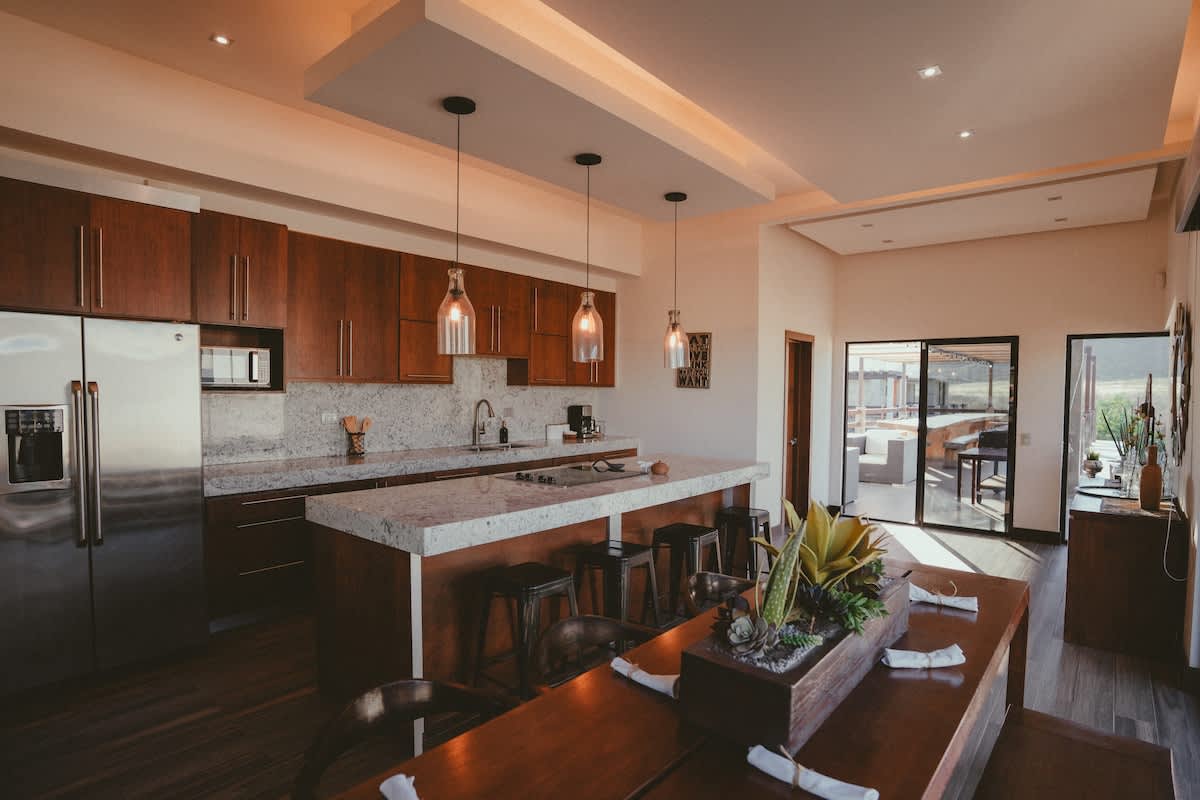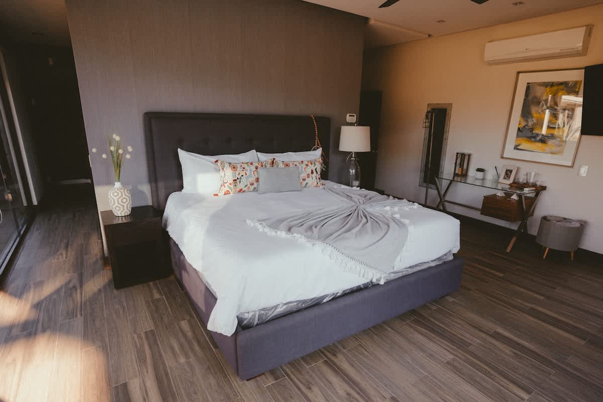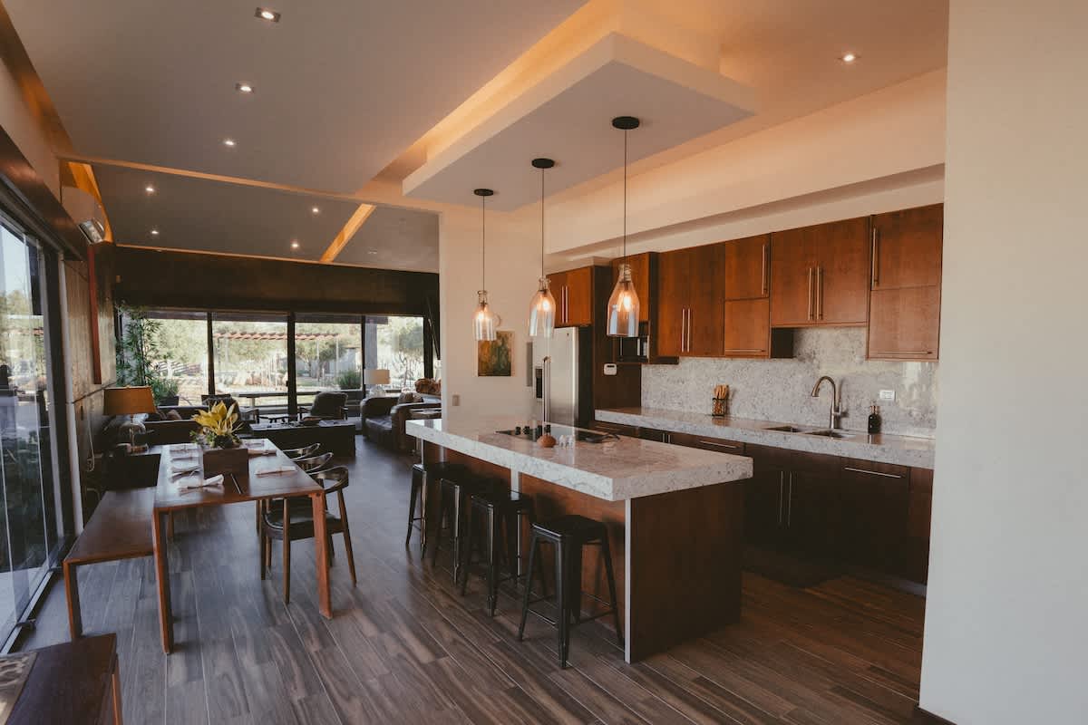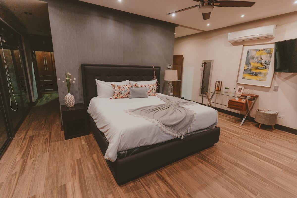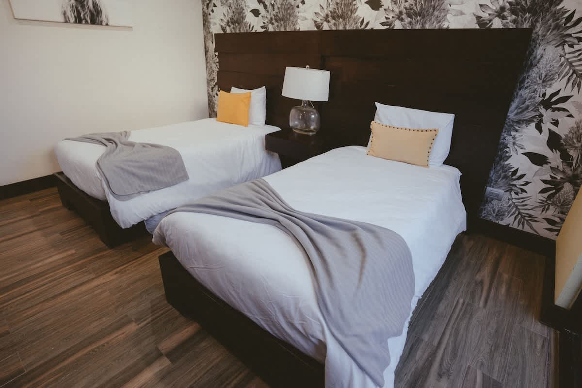 The main house features three bedrooms: one with a king bed, one with a queen bed, and one with two twin beds. Just a few steps away is the second casita, designed as a spacious suite with one king bed and two twin beds all within the same open room.