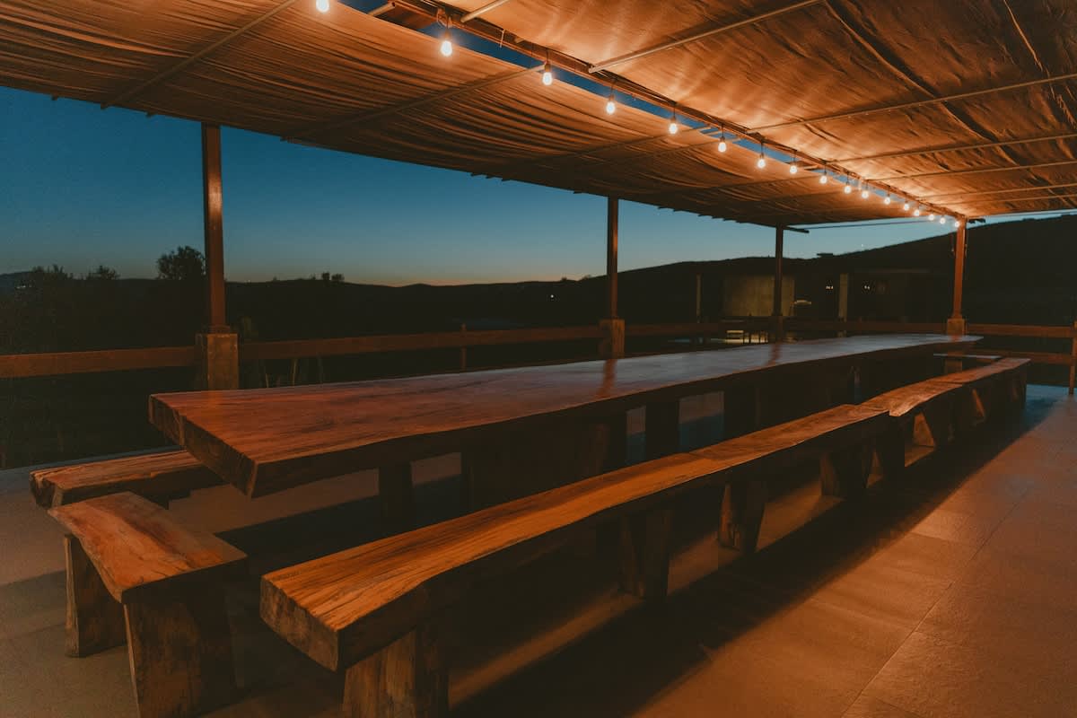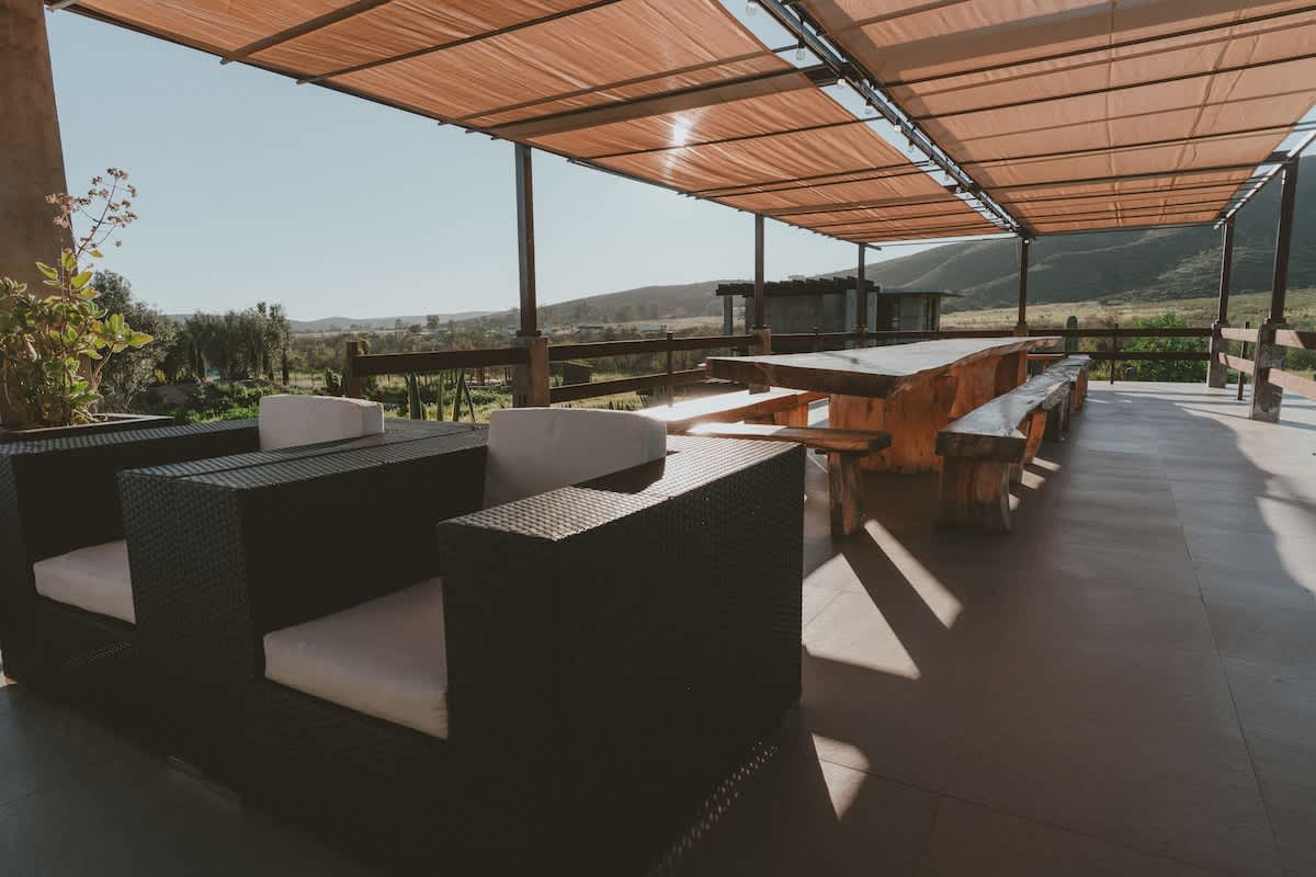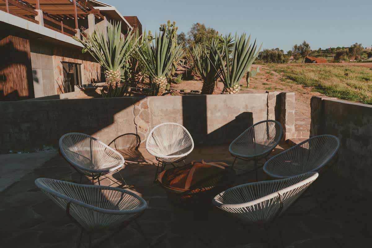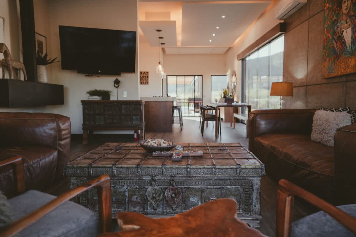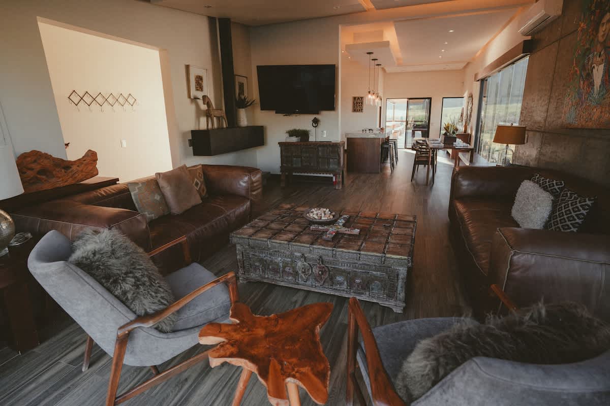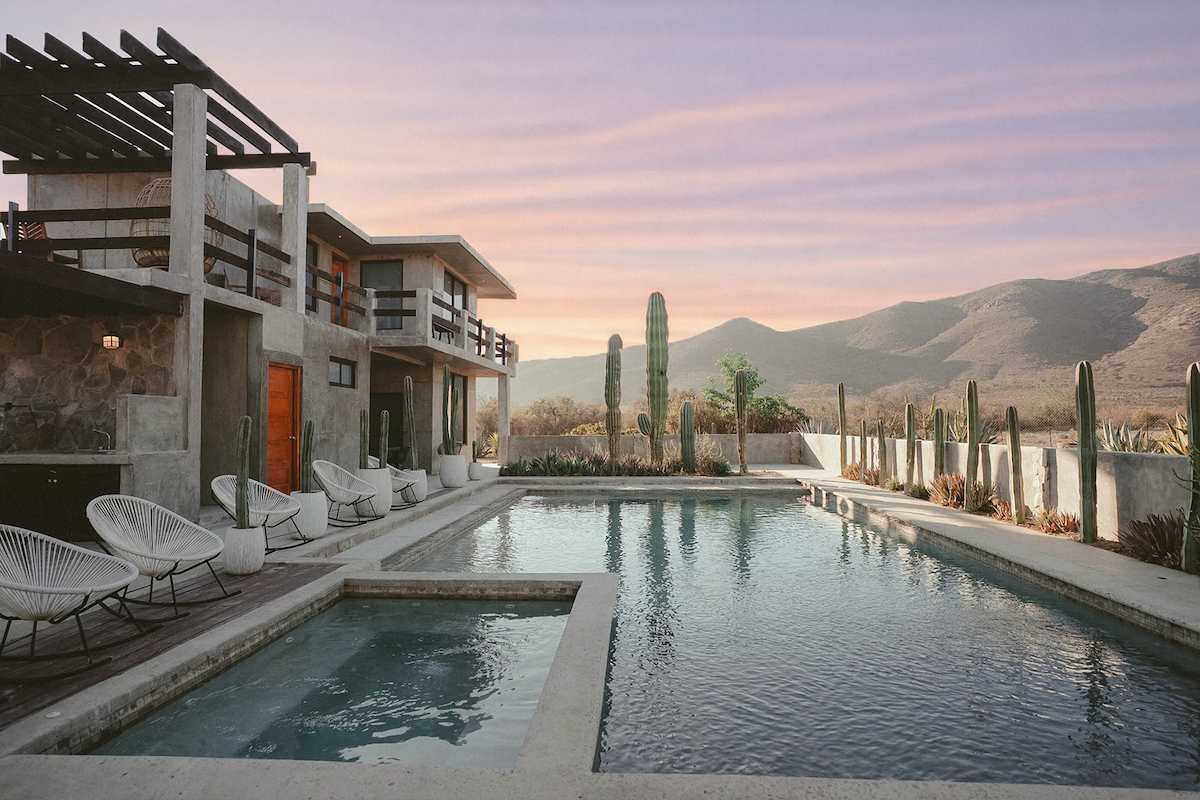 Both casitas are connected by the outdoor common areas, where you’ll find the heated pool, a fully equipped kitchen, outdoor living spaces, and a bonfire area perfect for relaxing during Valle evenings. The property is fully gated, offering privacy and security throughout your stay.