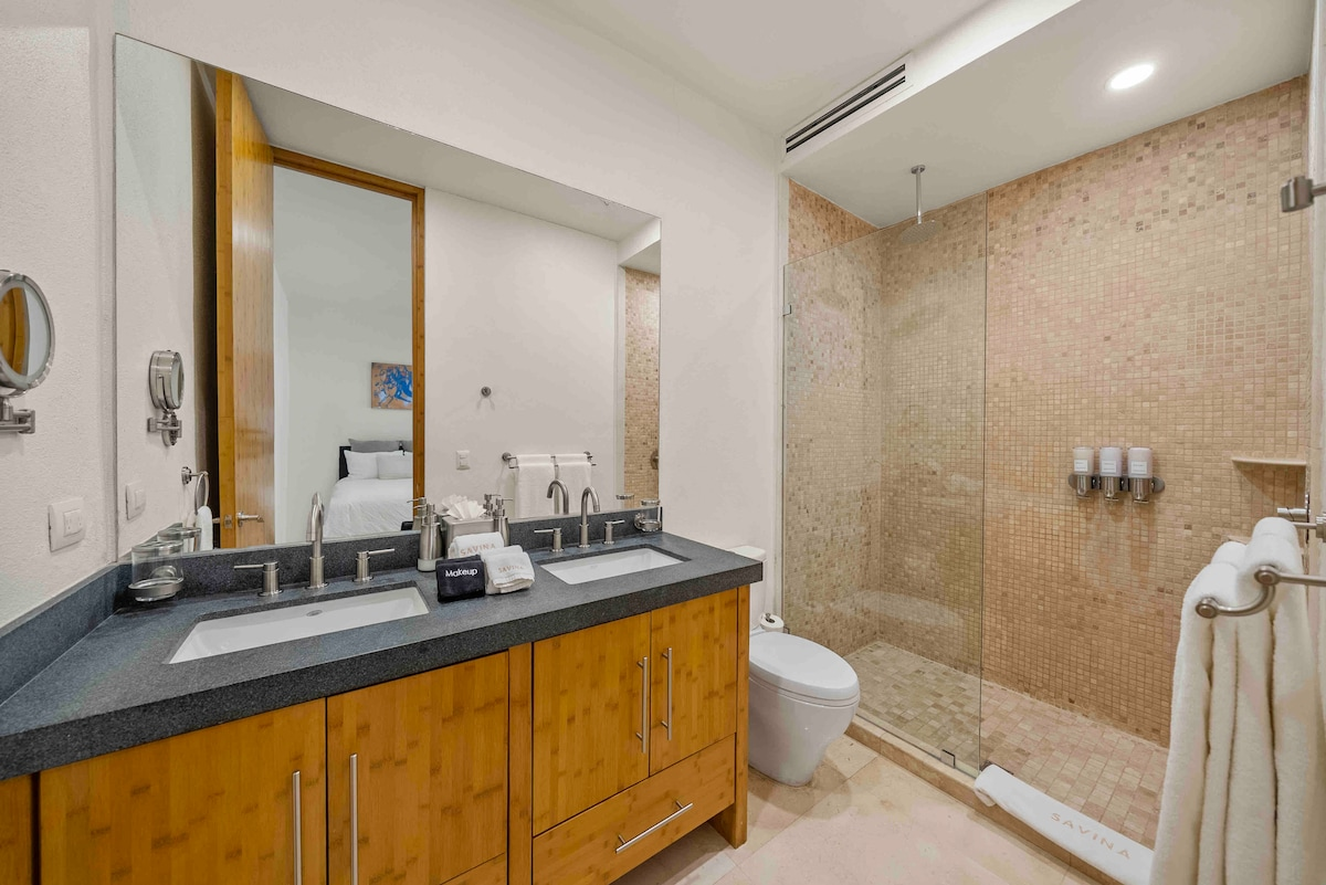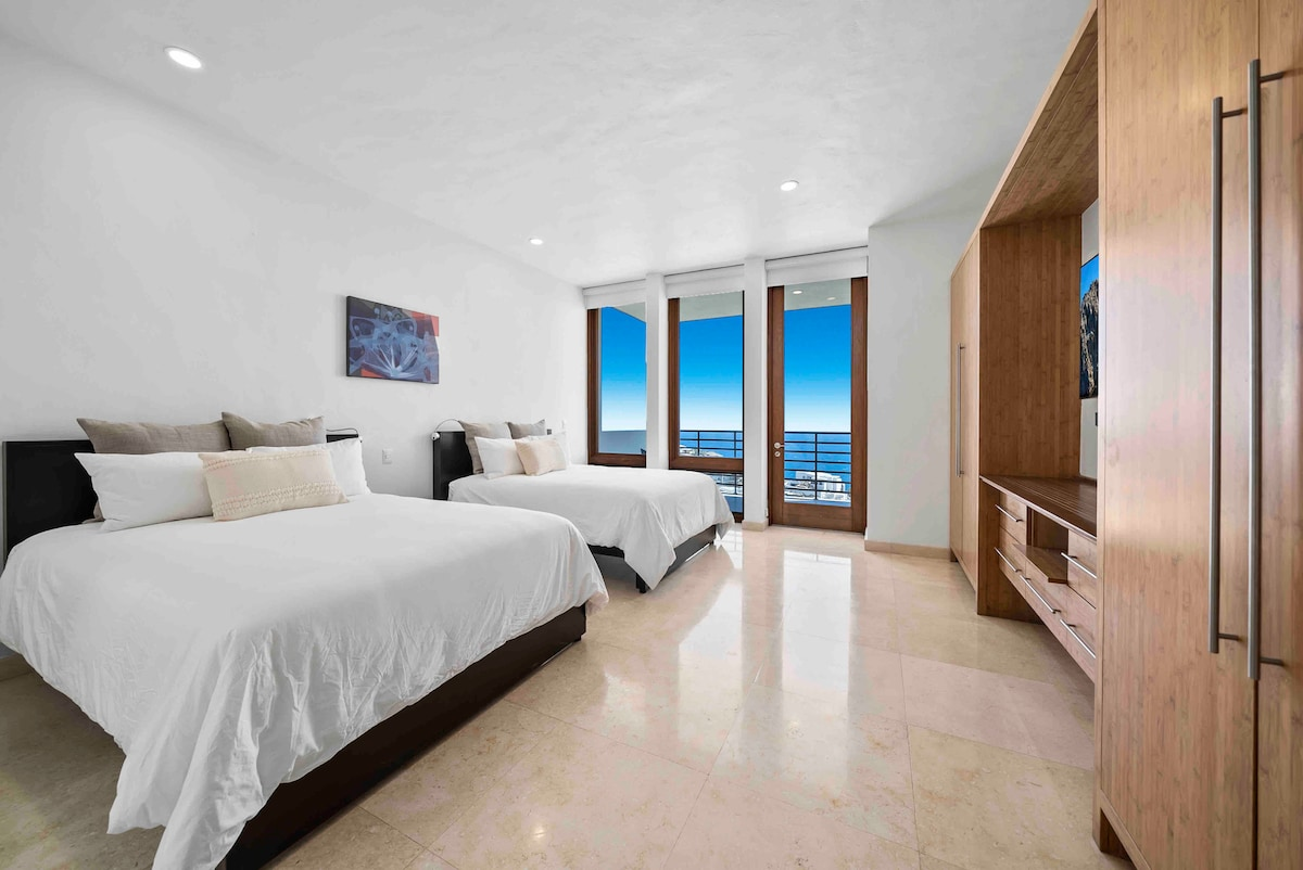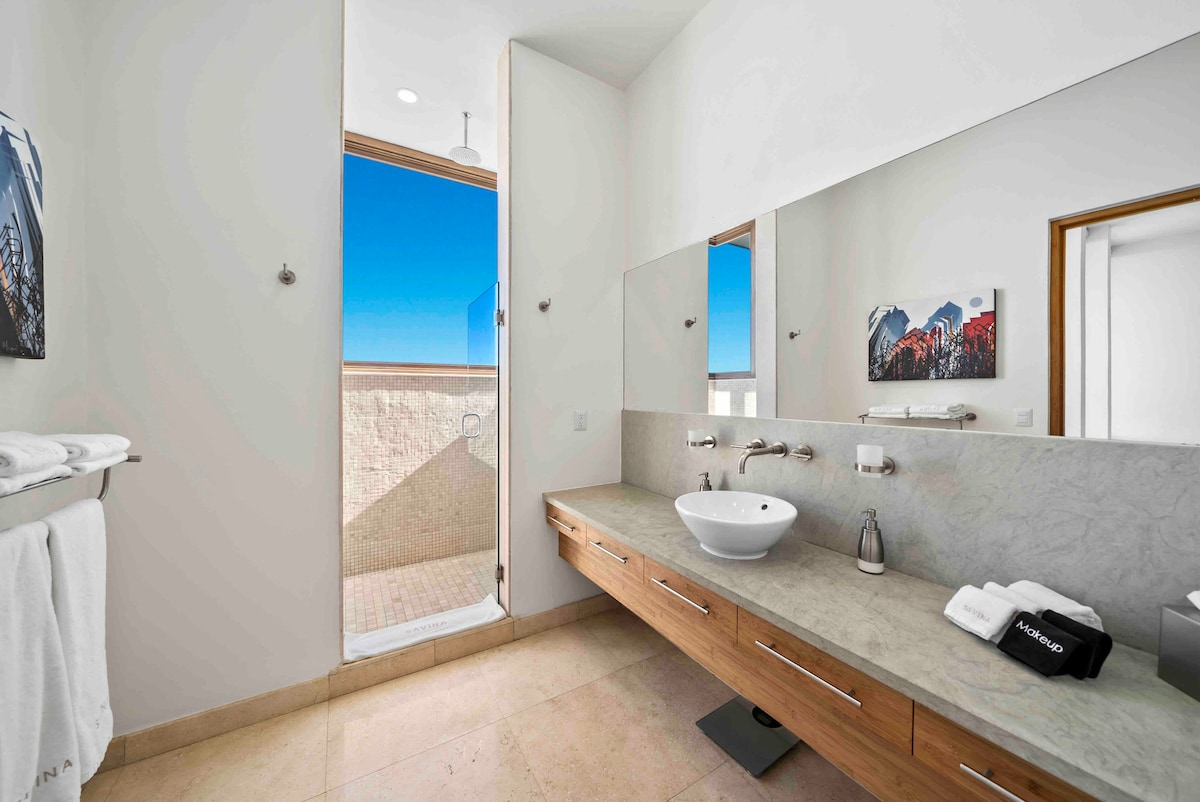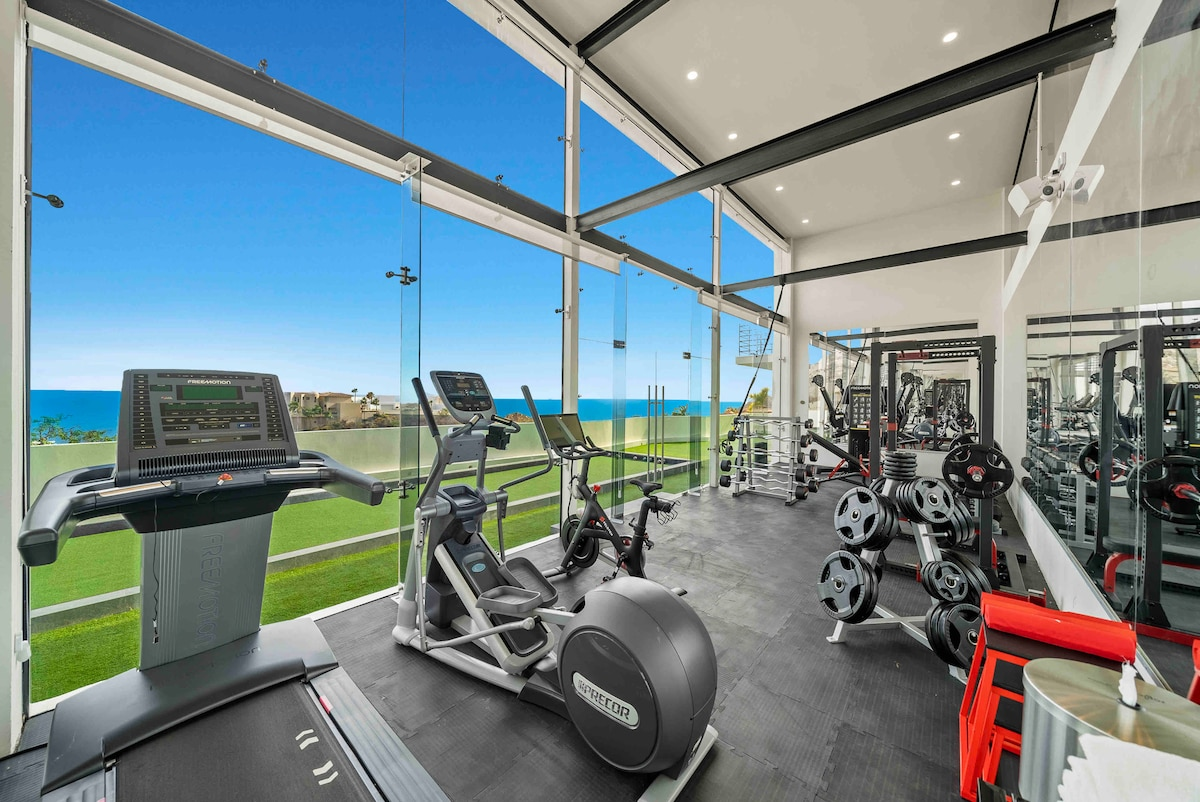 Indoors and out, the vibe is expansive and elevated. Dual gourmet kitchens, open dining for 16, a contemporary lounge, and an ocean-facing gym set the tone. Bedrooms are ultra-private with ensuite bathrooms, ocean-view terraces, and Kiehl’s amenities throughout. There’s even a business center for when work calls, and lawn games when it doesn’t.